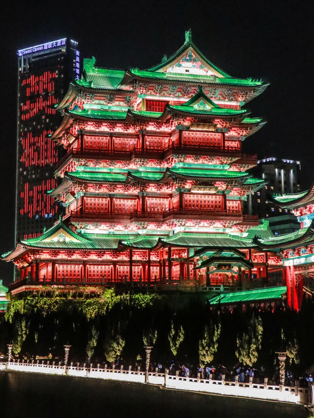 门票50r,晚上主阁广场有《寻梦滕王阁》演出168r(不含滕王阁登阁),登阁需再➕50r,晚上门票要九点后演出结束才能到正面游玩。背诵滕王阁序免费进(每天有限额)记得拿身份证👉不建议进去,在外园拍拍也超级美(图3.8.9.10)