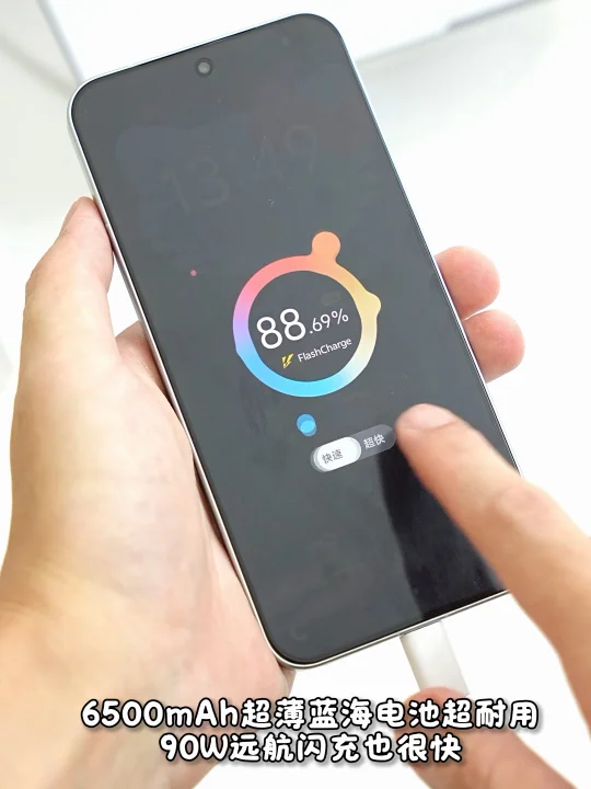 续航安全感直接拉满,6500mAh 超薄蓝海电池超耐用,出门在外从早用到晚都不用慌着找插座;90W 远航闪充也快,午休抽空充一会儿,下午不管是追剧、办公还是玩,电量都够劲