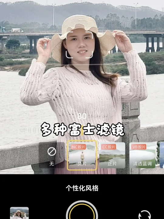 而且还自带的经典负片、正片、清透蓝调三种富士感胶片滤镜,按场景选就能一键出氛围感大片