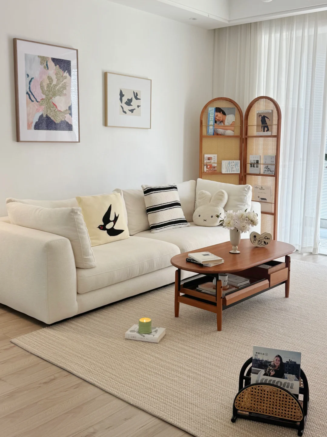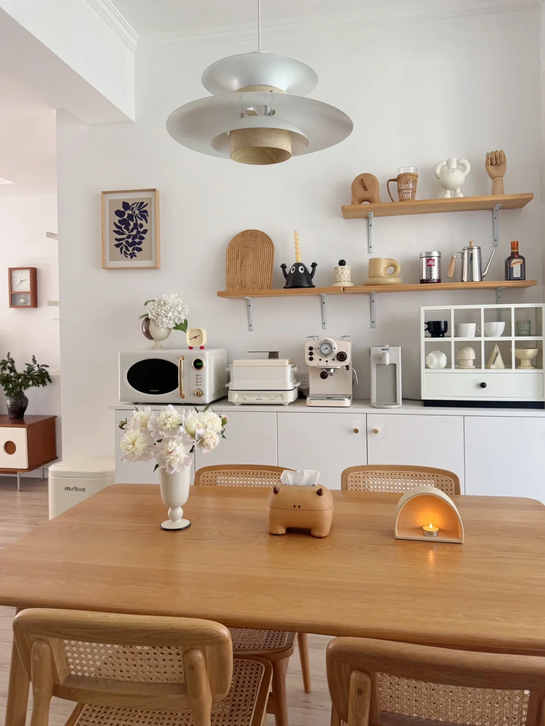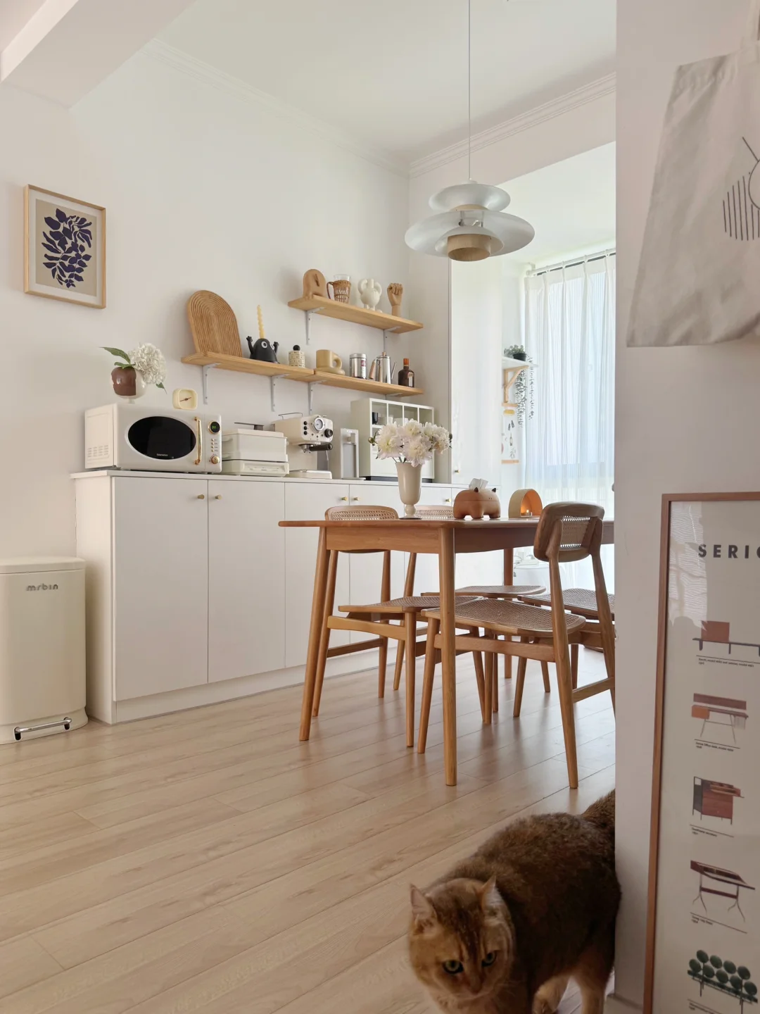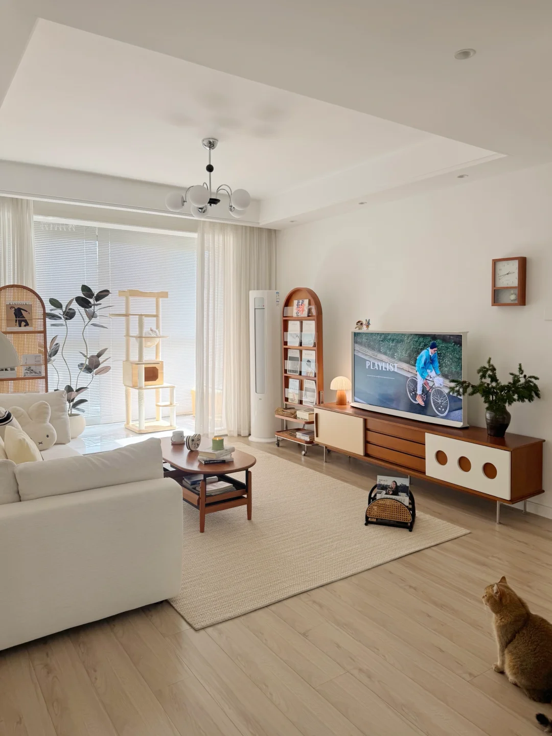5年前装修的小房子,当初预算低,没有请设计师,自己倒腾,请师傅施工,硬装从简,只花了8w就搞定了硬装~ 入住后努力工作,慢慢把想要的家具软装搬回家。 这几年把沙发餐桌电视柜都换了,客厅也换上了ins魔豆吊灯,灯光让客厅更有氛围感~ 普通人通过自己的努力住进了这样温馨的小家真的很知足~ -