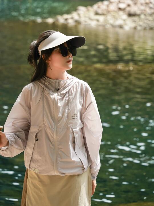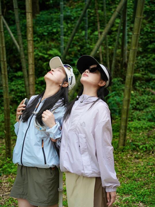 登山杖、水、干粮、防晒霜、登山包、防晒衣(这次穿了伯希和小森林防晒衣,它有UPF50+/紫外线阻隔率高达99%,加长加宽的大帽檐,防晒一件搞定,全程没被晒黑晒伤。凉感面料穿起来冰冰凉凉的很舒服。防泼水的设计,享受溯溪的同时也能保持干爽。而且收纳起来非常小巧,可以当斜挎包 轻薄易携带!)伯希和不愧是山系爱好者的户外衣橱。