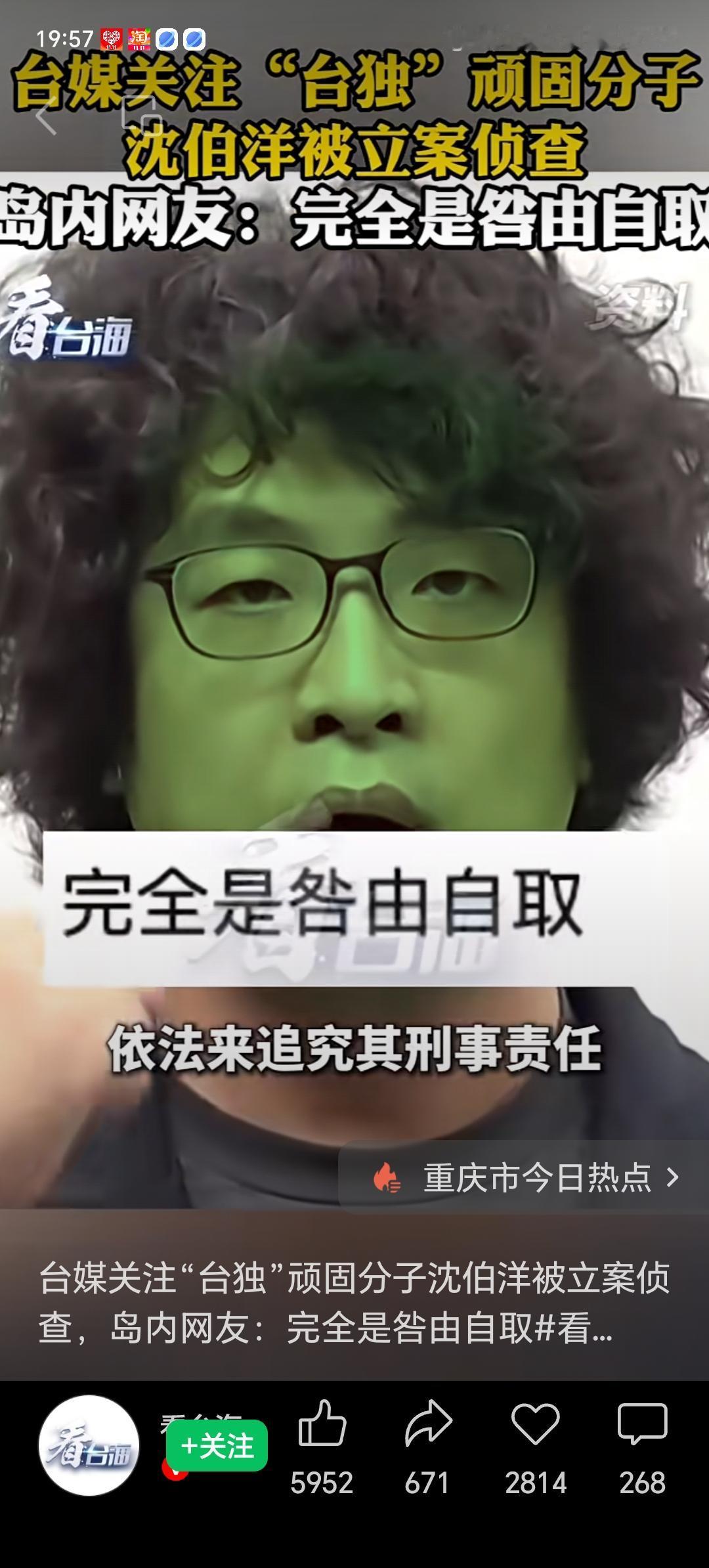 世界各国都知道,台湾是中国领土不可分割的一部分,中国必将统一,台独分子与台海和平水火不容。 我们完成国家统一大业的意志,坚如磐石。祖国统一,也必然统一。 据央视新闻消息,重庆市公安局10月28日发布警情通报表示,为了坚决打击台独分子沈伯洋通过发起建立”台独“分裂组织“黑熊学院”等方式分裂国家犯罪活动,根据《中华人民共和国国家刑法》《关于依法惩治”台独"顽固分子分裂国家,煽动分裂国家犯罪的意见》对沈伯洋涉嫌分裂国家犯罪立案侦查,依法追究刑事责任。 几个跳梁小丑螳臂挡车,改变不了两岸同属一个中国的事实,阻挡不了祖国终将统一的历史车轮!