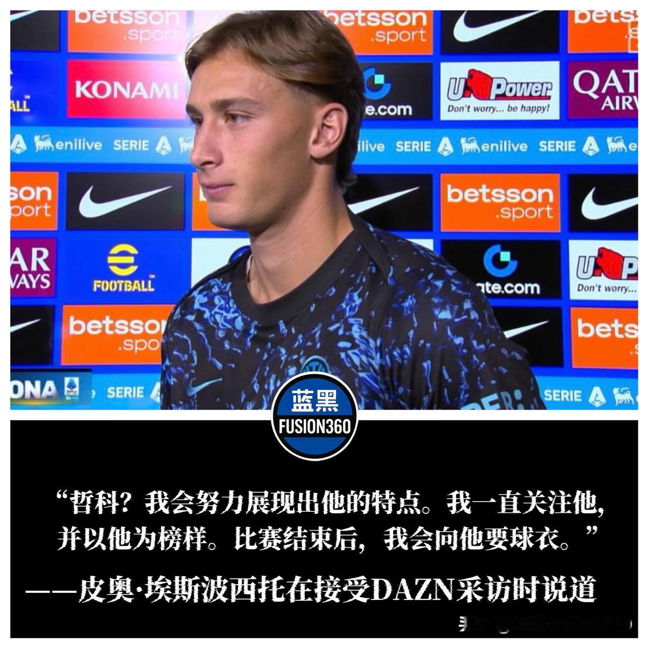 埃斯波西托赛前致敬哲科:我会向他要球衣 国米青训瑰宝埃斯波西托在对阵佛罗伦萨前接受采访时,深情回顾了与偶像哲科的缘分。这位20岁的前锋坦言,他从小就看哲科的比赛录像,在国米训练时也曾近距离观察过这位波黑射手,“我不否认我从他身上汲取灵感,因为我非常喜欢他” 。 谈到本场比赛,埃斯波西托表示:“穿比哲科更重的球衣号码?这是主教练的巨大信任信号。我不认为那是最重的,米斯特先生给了我所有的机会。那不勒斯已是过去,我们必须向前看” 。对于即将对阵的哲科,他说:“我会努力展现我的特点。我一直关注他,赛后我肯定会向他要球衣” 。 埃斯波西托今年夏天从斯佩齐亚租借回归国米,并在新主帅齐沃麾下获得了更多一线队机会 。哲科则在2023年夏天离开国米本赛季回归意甲加盟佛罗伦萨。, 这场师徒对决充满温情,埃斯波西托能否在偶像面前展示自己?你觉得他未来能达到哲科的高度吗?国际米兰 💙🖤