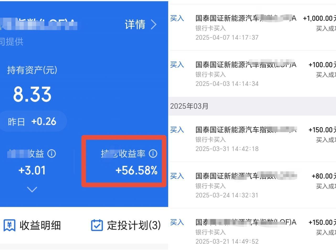吓到我都不敢相信,这是真的!我今年年初闲着没事,就想着存点钱,既可以有收益,又能及时取出来用的,所以就买了点Ji金,而我恰好对新能源感兴趣,就陆陆续续存了几千块进去。 后来看着收益感觉挺高了,担心会亏回去,索性就拿了出来,剩下几块钱再里面,结果才过去半年的时间,它不仅没有跌下来,反而越来越高。 刚打开一开,居然已经到了56.58%的收益率了,吓到我都不敢相信,同时我又悔啊!要是当时不怕,一直存放着,5000块钱,少说也能多一千多的收益了吧!
