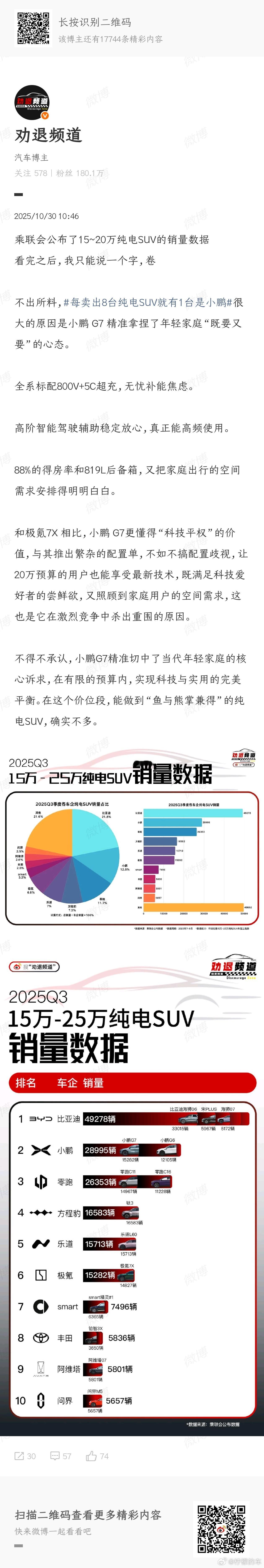 没错,当我们的眼光放在20万级的SUV市场里,想要智能化、舒适性、驾控以及续航体验都面面俱到,小鹏G7可以说是要什么有什么,已经卷到这个价位的天花板了每卖出8台纯电SUV就有1台是小鹏