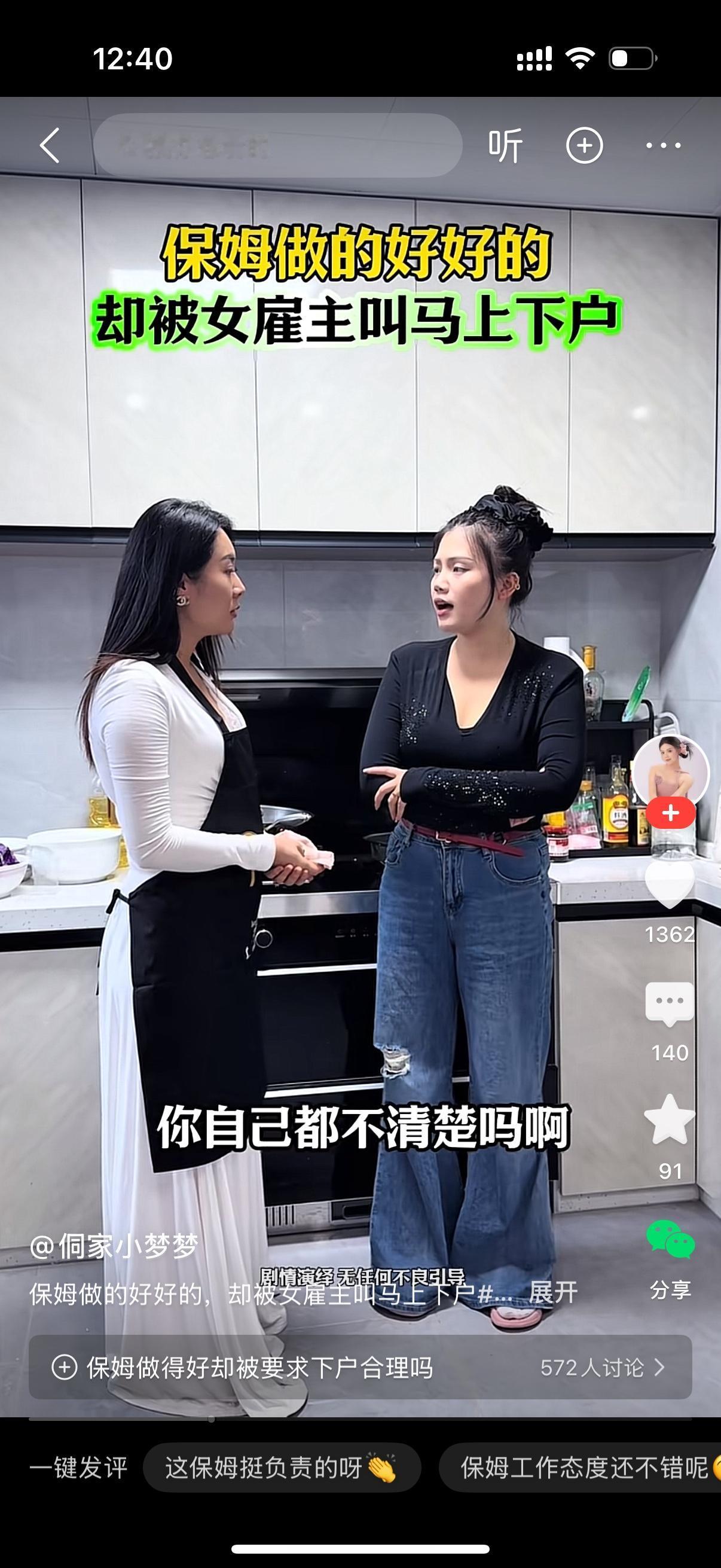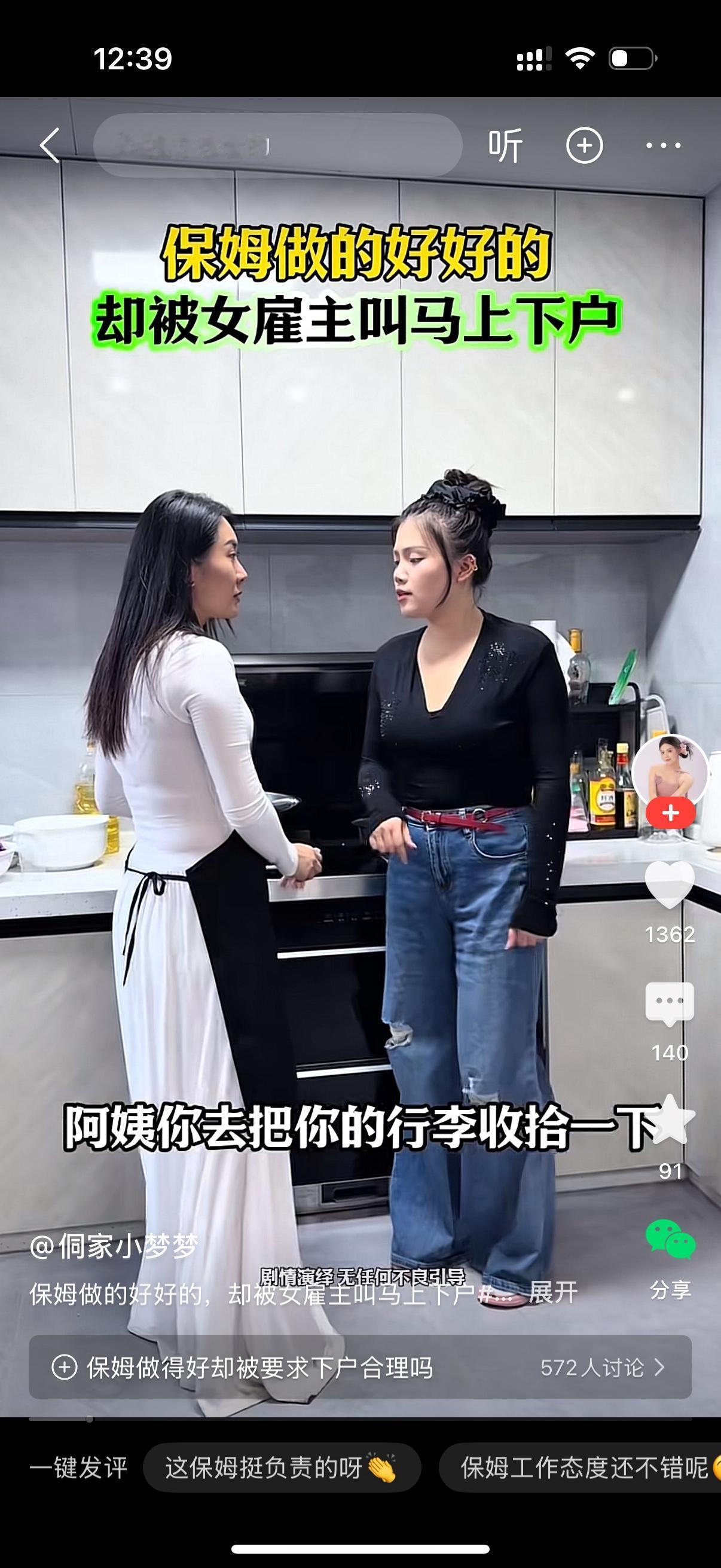 保姆正在厨房做饭。女主人走过来说,阿姨,你去把你的行李收拾一下,准备下户。保姆很诧异,问为什么啊?女主人上下打量她一番,你自己都不清楚吗?保姆还是莫名其妙,不知道自己哪里做的不对。这个时候男主人走过来,问什么情况。女主人把男人拉走,说你不要管。保姆站在原地,不知所措,到底为什么啊?
