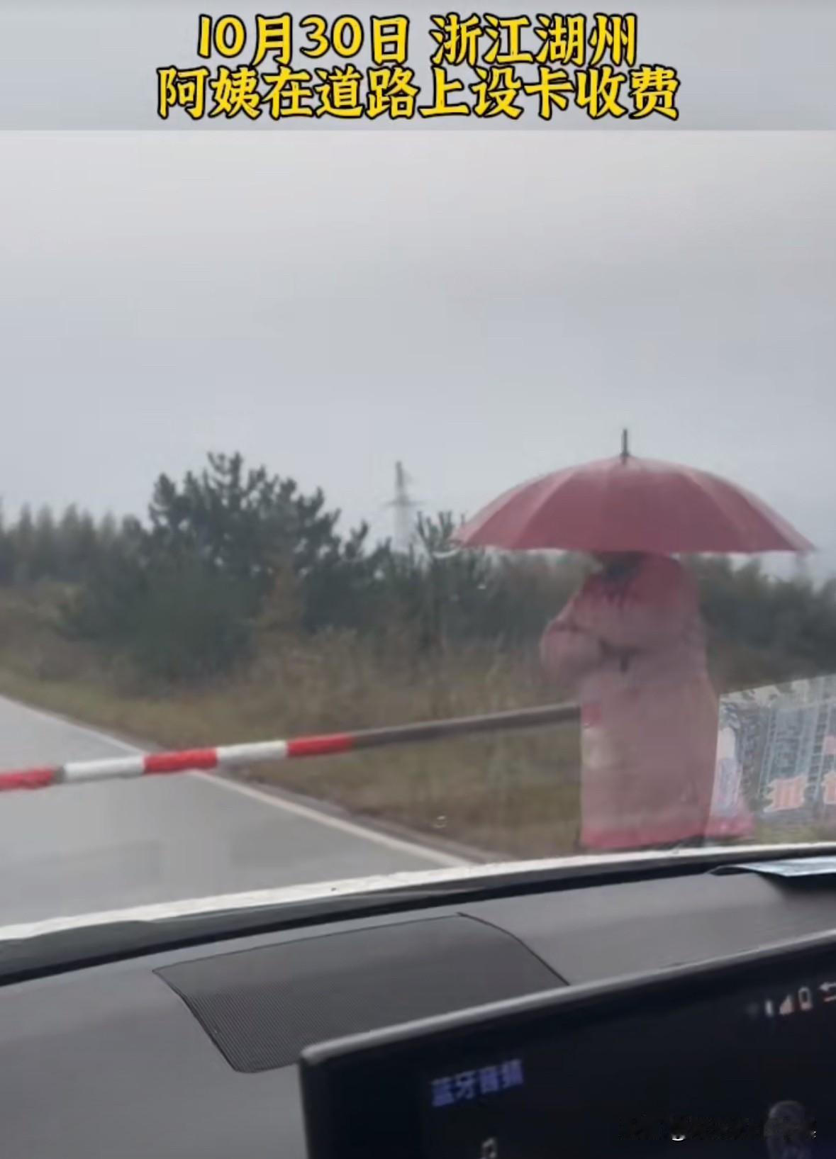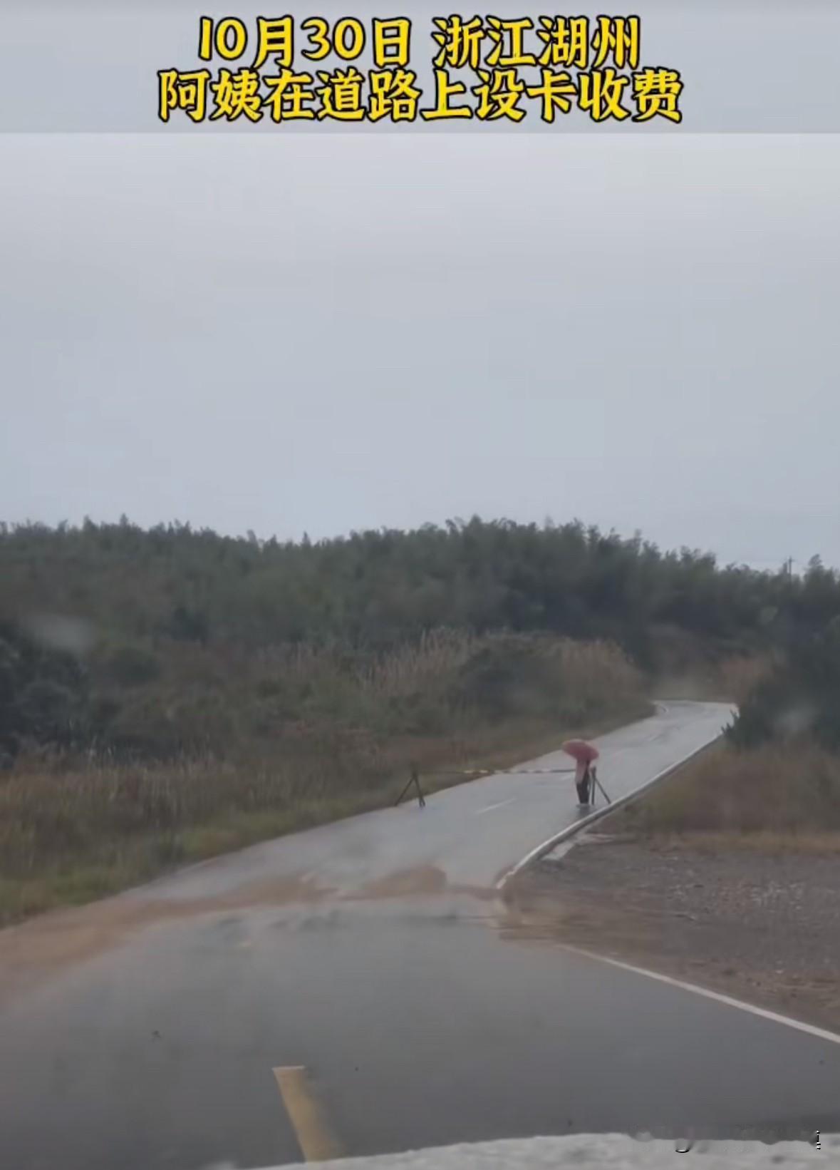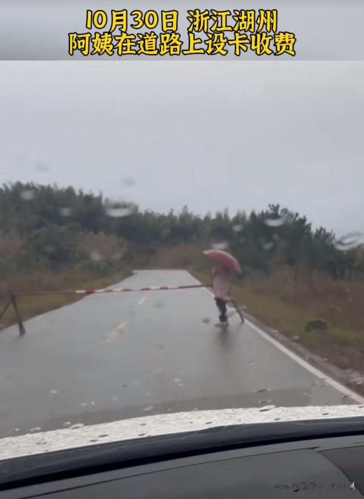 浙江湖州一位大妈在道路上设置路障,并收取费用,一辆车100块钱。 有一女子开车从这路过,询问多少钱,并拿手机拍大妈录视频! 大妈说:“不要给我拍照,拍照犯法的,别人都付钱,就你不付钱!” 如果是村民自己出钱修的道路,收点过路费也是应该的,不过一百块太多了。 如果是国家修的,建议直接报警,把这个刁民关进去。农村拦路收费