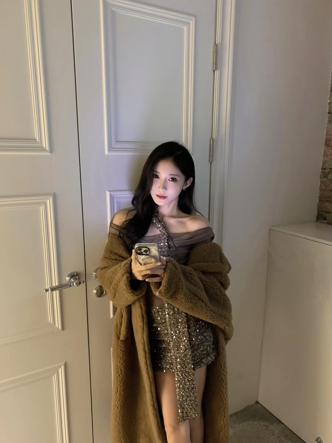 晚上走在街上,看见个少女,长得那叫一个好看。她脸上化着精致的淡妆,眼睛亮晶晶的。