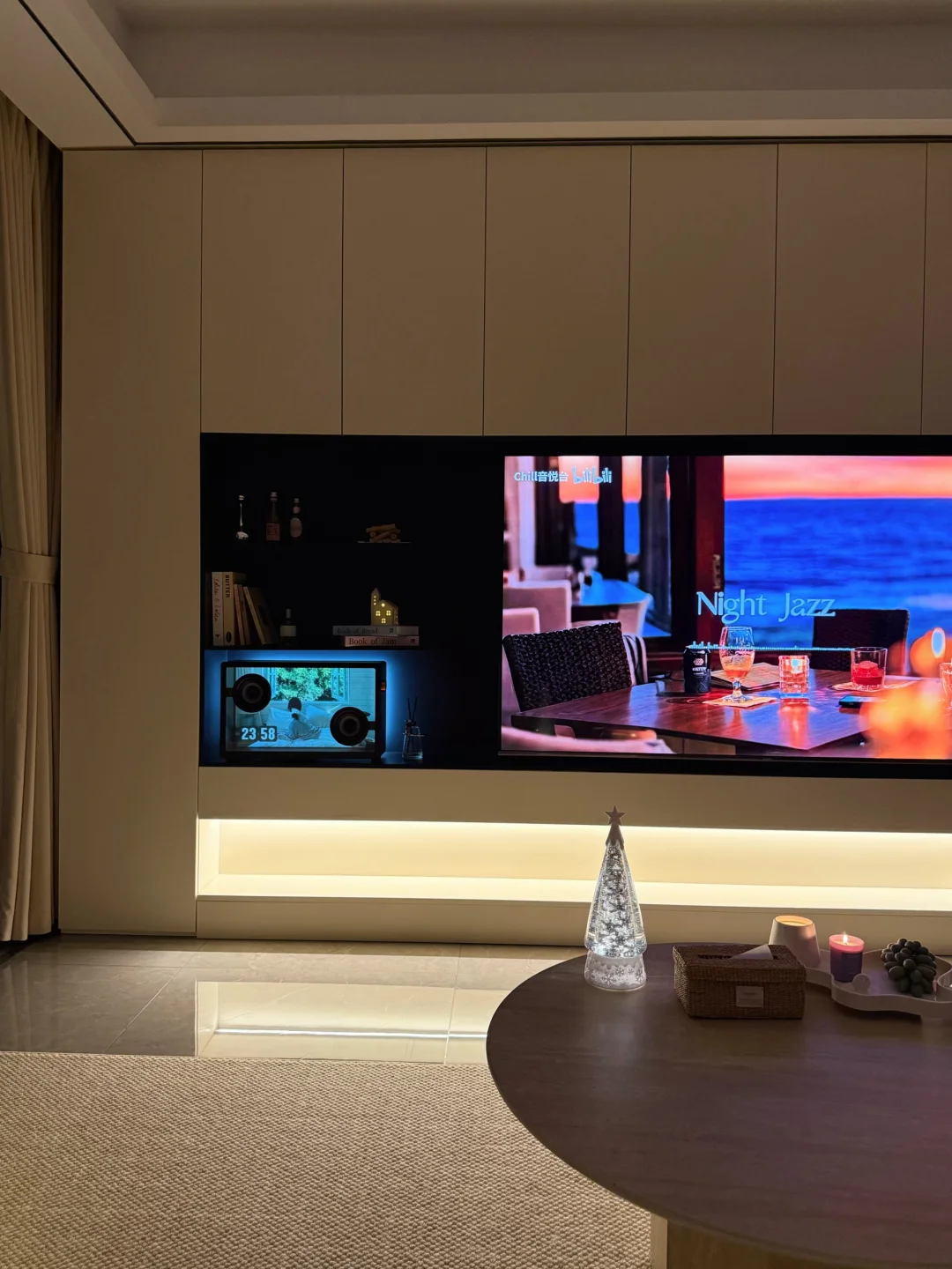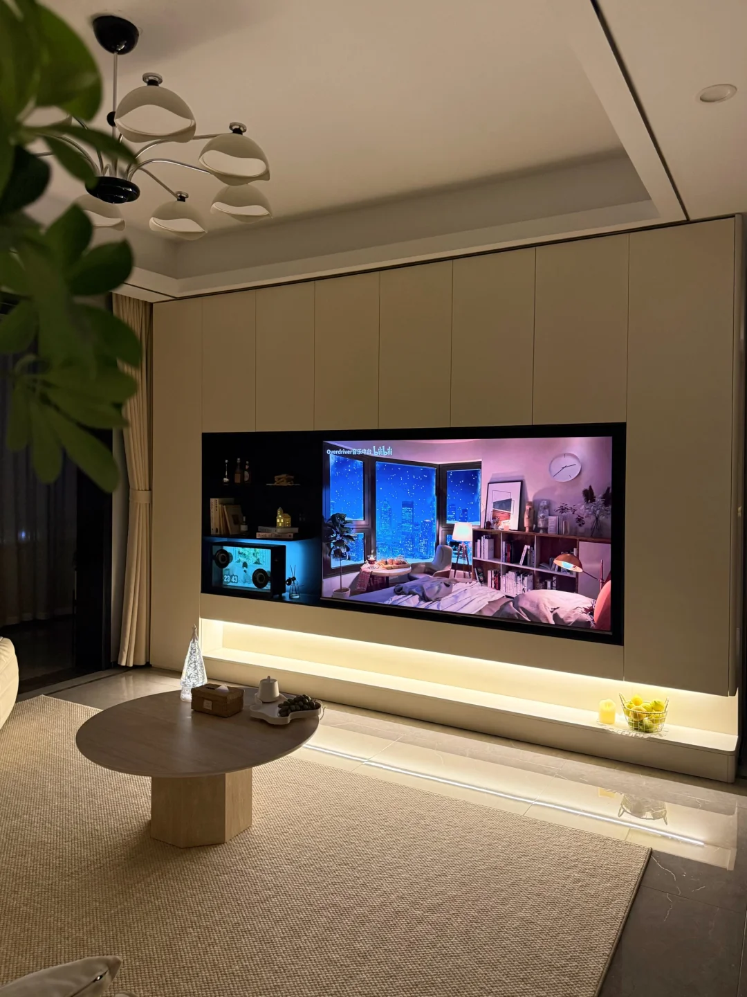 底部氛围灯一打开 客厅的温馨感直接拉满😆