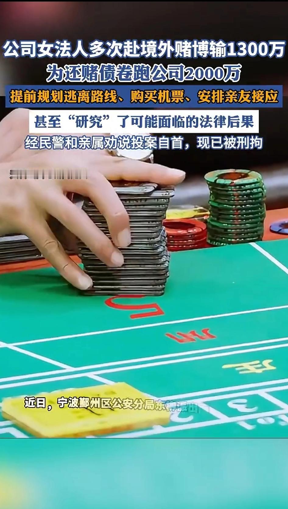 公司女法人多次赴境外赌博输1300万 为还赌债卷公司2000万,不得不说这女法人