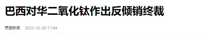 忘恩负义,巴西对中国出手了! 10月28号巴西外贸委员会直接官宣,对咱们中国产的金红石型二氧化钛给了反倾销肯定性终裁,不光要加税,一征就是5年,这简直是给长期合作的贸易关系泼了盆冷水。 要知道“中国制造”的钛白粉在巴西市场可不是小角色,这些年一直稳稳占据重要位置,不管是当地涂料厂调颜料,还是塑料企业做着色,甚至建筑行业刷外墙,都少不了中国钛白粉的影子,早就成了中国出口化工品里的一根重要支柱。 可谁能想到,以前处处受欢迎的“香饽饽”,如今居然成了巴西的“重点打击对象”,直接把这条顺畅的产业链推上了“防御”模式,这转变实在让人措手不及。 巴西那边给出的理由倒是挺“常规”,说是国内的钛白粉生产商天天喊冤,抱怨中国输往巴西的同类产品卖得太便宜,属于恶意倾销,把本土产业的生存空间都挤没了,损害了国内产业的健康发展。就凭着这些说法,巴西政府去年就启动了反倾销调查,今年初还发布了肯定性初步裁定,如今终裁一落地,算是把制裁的盖子彻底盖死了。 但明眼人都清楚,这事没表面那么简单。钛白粉这东西可不是普通小商品,它是实打实的基础化工材料,下游连着涂料、塑料、建筑等好几个关键行业,随便哪个行业都离不开它。 而中国在钛白粉这行的分量,说出来能吓一跳——2023年咱们的产能就有550万吨,占了全球56%的份额,妥妥的世界第一。这些年海外不少头部企业因为成本和环保问题陆续退出产能,中国企业正好抓住机会补了位,出口量从2019年的100.3万吨涨到2023年的164.2万吨,四年复合增长率都到13%了。 巴西本身就是需求增长挺快的市场,中国钛白粉自然就成了当地市场的主力军。 可产能大、出口多,反倒成了“原罪”?巴西本土那些生产商自己竞争力跟不上,不想着怎么提升技术、降低成本,反而直接找政府求助,用反倾销的大棒把中国产品往外赶。 他们不想想,中国产品能打开市场,不光是价格有优势,质量也是经得住考验的。就拿龙佰集团来说,人家靠氯化法工艺生产的钛白粉,就算在行业整体低迷的时候还能维持盈利,这要是没点硬实力根本做不到。 巴西这波操作也不是独一份,最近一年多,中国钛白粉早就成了反倾销的“重灾区”。除了巴西,欧盟、印度、欧亚联盟、沙特这好几个国家和地区都先后启动了反倾销调查。 美国那边更是早就设了关税壁垒,把中国钛白粉挡在门外。为啥这么多国家盯着钛白粉下手?说白了还是咱们的出口模式出了点问题。这些年国内钛白粉产能扩张太快,供给增长速度远远超过了需求增长,好多企业为了抢订单就开始打价格战,你降一点我降一点,最后把价格压得太低。 尤其是在海外市场,有时候为了抢占份额,甚至不惜以低于成本的价格出货,这不正好给了别人搞反倾销的借口吗? 这种“过度出口”引发的连锁反应。一个行业要是在多个国家都引发了贸易摩擦,很容易形成“示范效应”,其他国家可能会跟着学,纷纷举起反倾销的大旗。 到时候不光是钛白粉,其他产能过剩的行业也可能遭殃。毕竟国际市场就那么大,你一家独大还低价倾销,难免会触动别人的利益,人家自然要想办法自保。 说起来,中国企业也不是故意要搞低价竞争,实在是国内产能过剩逼得没办法。2024年以来,钛白粉价格就一直在跌,不少企业降负荷、减产甚至停产,可即便这样,还有新的产能在不断投产。 供大于求的情况下,企业为了活下去只能降价出货,最后陷入“越降越亏、越亏越降”的怪圈。现在海外市场又接连受限,这些卖不出去的货只能转回国内,进一步加剧供应过剩,让整个行业都陷入困境。 要是巴西真的想平衡本土产业和市场需求,其实可以和中国企业好好沟通,比如设定合理的价格区间,或者推动中国企业在巴西设厂,实现本地化生产,这样既能保护本土就业,又能让下游企业拿到性价比高的产品。可现在直接用反倾销税一刀切,反而把合作的路堵死了。 国际贸易讲究的是互利共赢,不是零和博弈。巴西靠反倾销保护了少数本土生产商,却损害了更多下游企业的利益;中国企业靠低价抢市场,最终也会被贸易壁垒逼到绝路。 希望这次事件能让双方都冷静下来,找到一个能兼顾各方利益的解决办法,毕竟长期的合作才是最划算的买卖。要是真把这条路走死了,最后谁也落不着好。