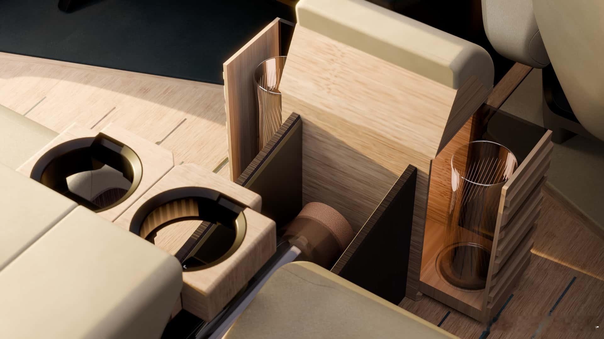 后排采用了独立双座布局,不仅车顶集成了触控式空调控制区,扶手也内置了双杯架和伸缩冰箱,搭配对开式尾门,旗舰的排面没有丢
