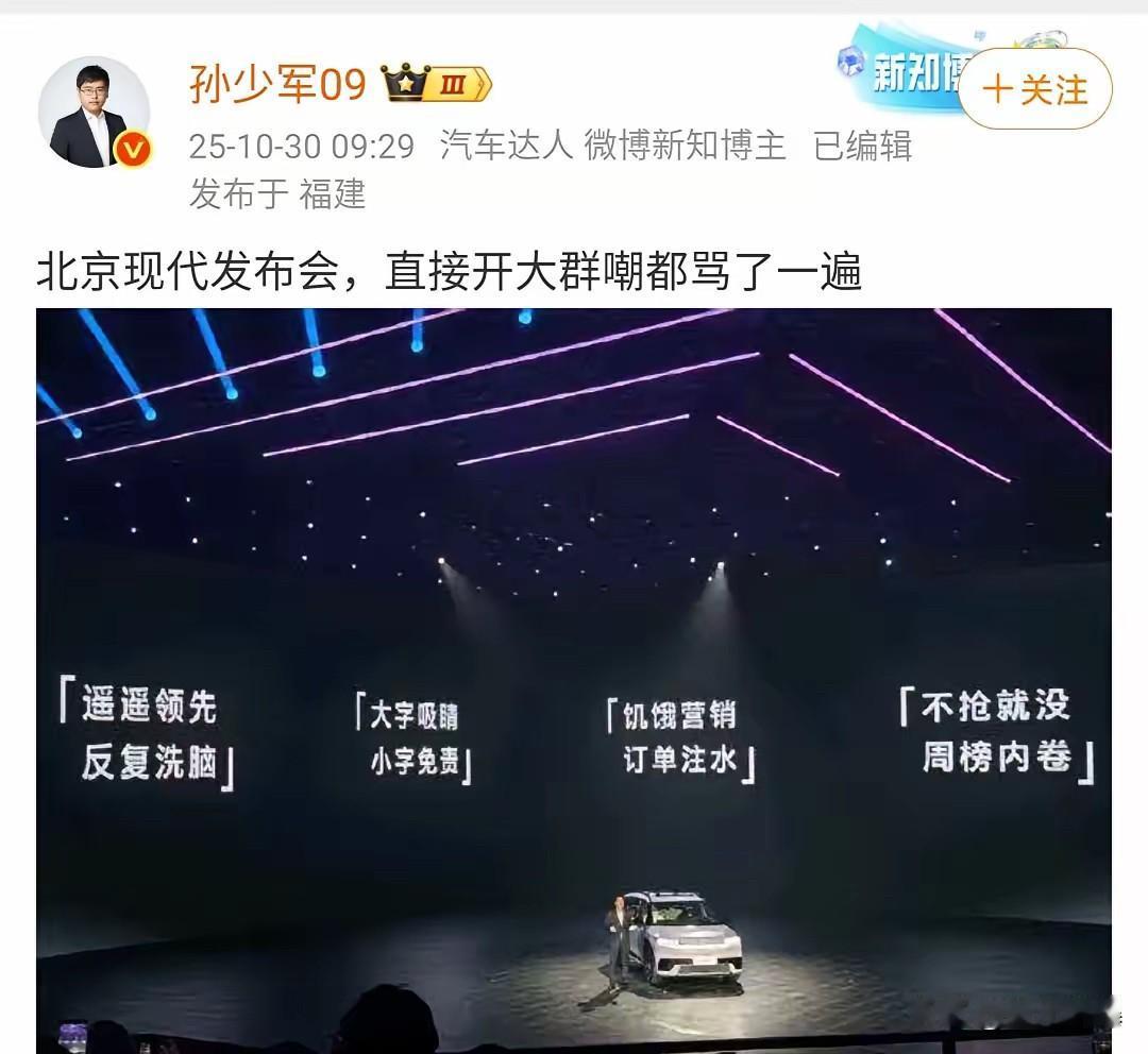 现在的合资车企不好过啊! 没想到现代起了带头作用, 在发布会上直接把国产新能源车企的营销手段摆了出来,这是嘲讽还是嫉妒?[泪奔][泪奔][泪奔][泪奔][泪奔] 但是有一点值得骄傲的,那就是选用了咱们比亚迪的刀片电池,看来比亚迪在电池方面还是非常有竞争力的![赞]