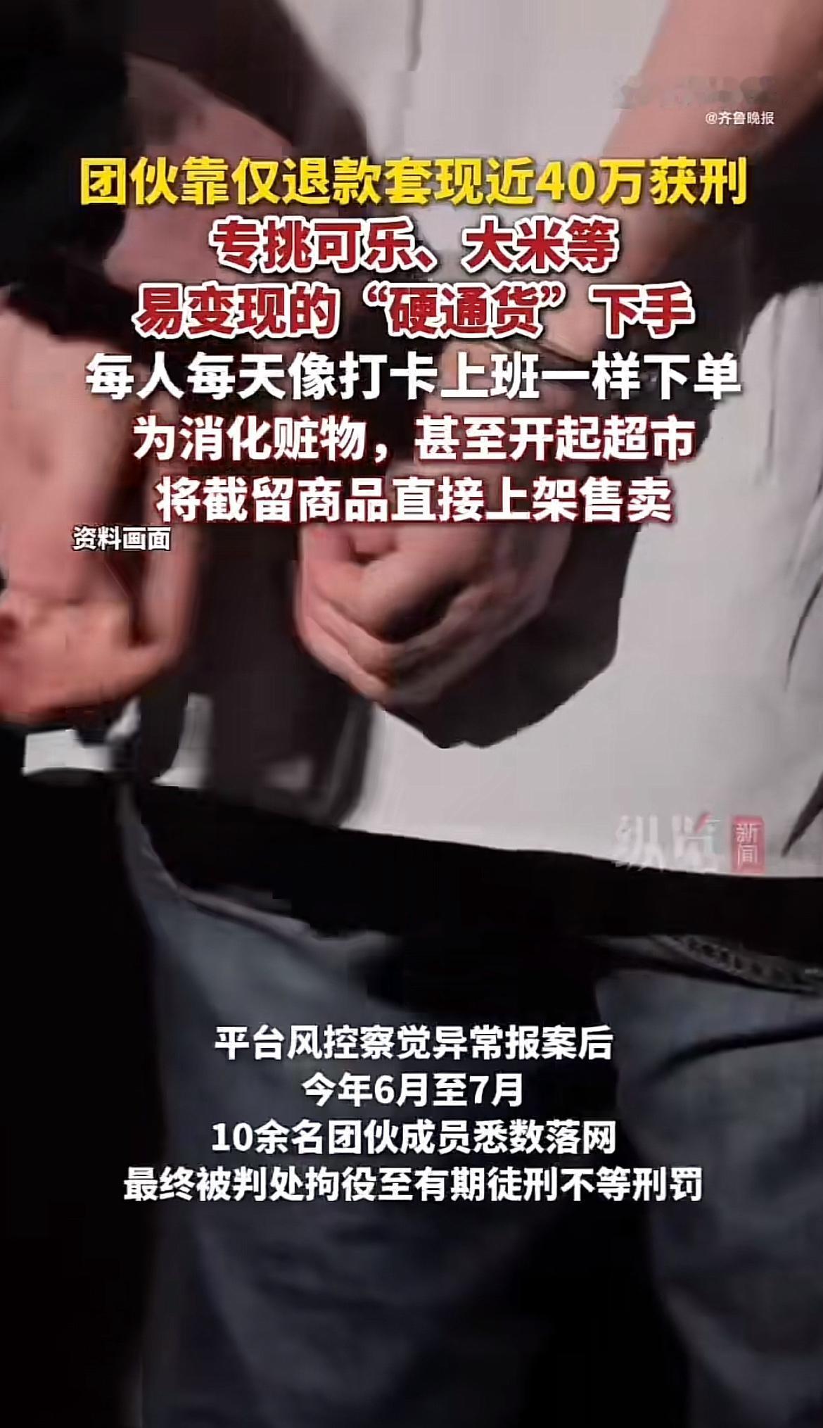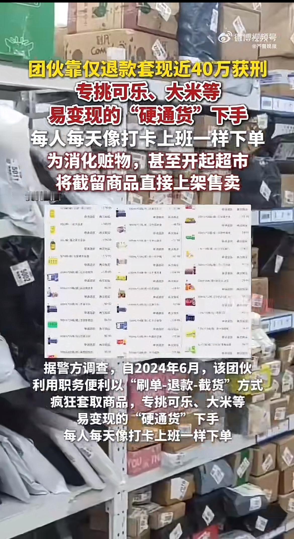 最近看到个新闻,一个团伙靠退换货套现近40万获刑了。他们专挑可乐、大米这类易变现的“硬通货”下手,利用仅退款规则套取商品,甚至还开起超市来消化这些“羊毛”。这种行为真是太恶劣了,不仅损害了商家利益,也破坏了市场秩序。现在电商平台对消费者有各种保障,本意是好的,但却被这些不法分子钻了空子。他们以为能靠这种歪门邪道发财,最终还是逃不过法律制裁。大家可千万别学他们,走正路才是长久之道。