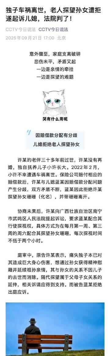 独子车祸离世,老人探望孙女遭拒遂起诉儿媳,法院判了!