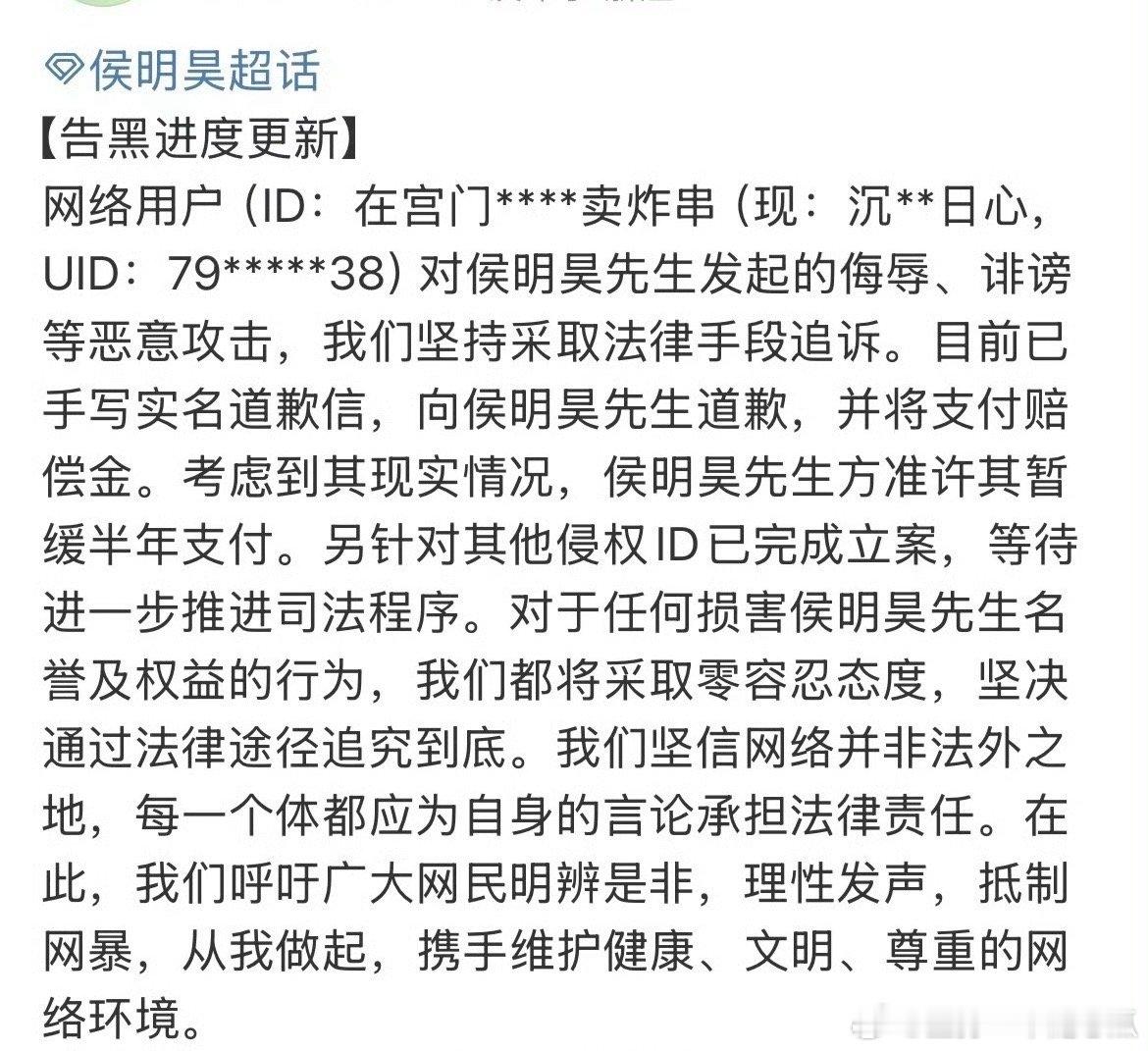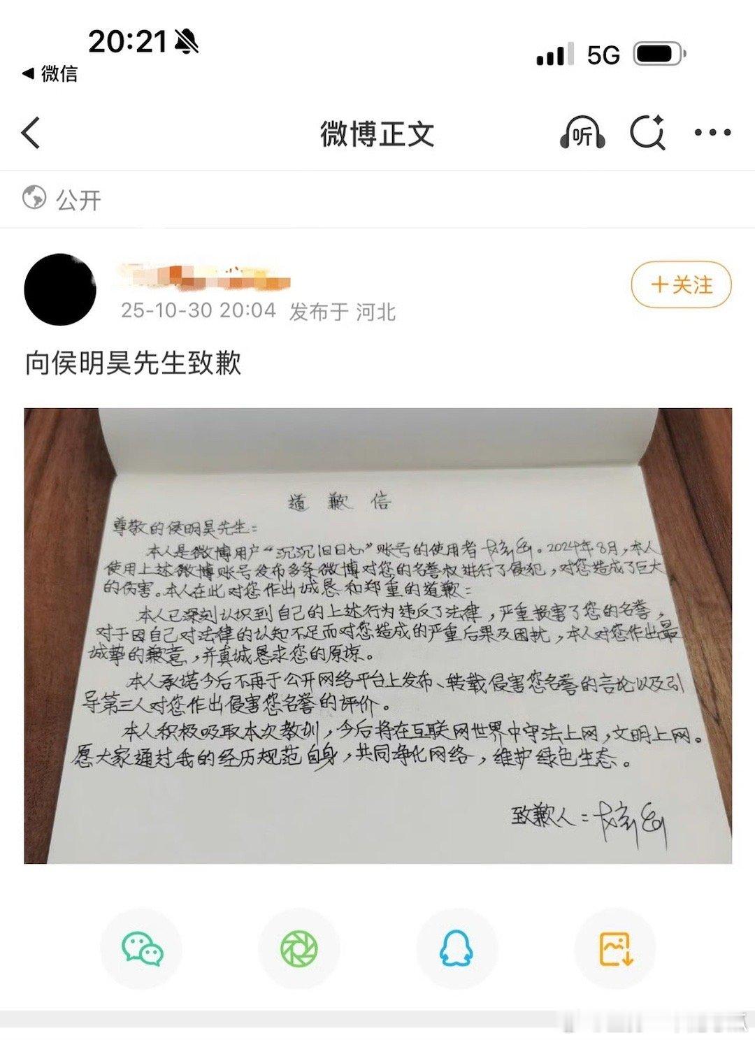 侯明昊嘿粉手写道歉信,支持小猫哥维权[拳头]
