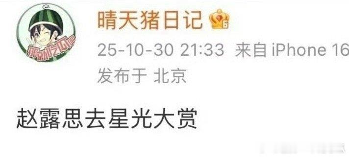 赵露思要去星光大赏,鹅今年也就许我耀眼拿得出手了,是得请去
