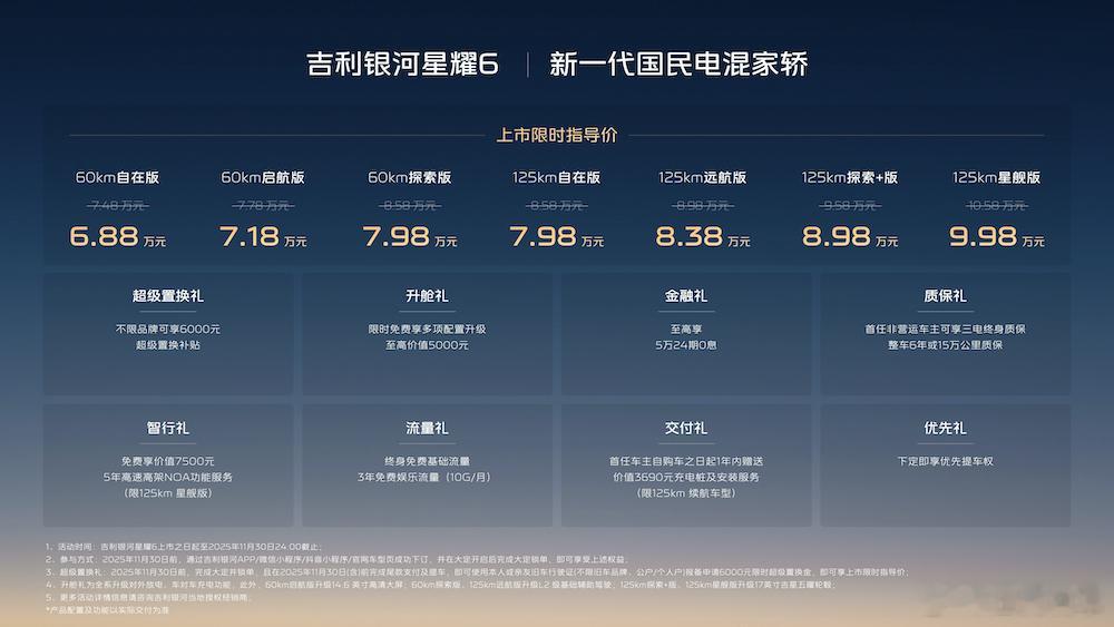 新一代国民神车吉利银河星耀6全球上市,限时6.88万元起,至高享七重购车权益吉利银河星耀6限时指导价6.88万元起新一代国民电混家轿
