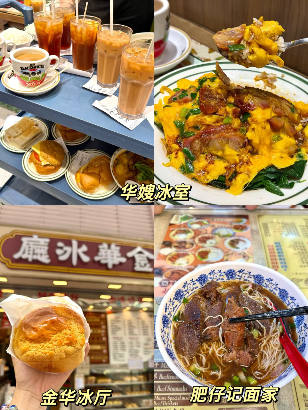 2️⃣景点周边平价特色美食:金华冰厅、明华饼家、肥姐小食店、通达食店、辉记车仔面、华嫂冰室、筷子记