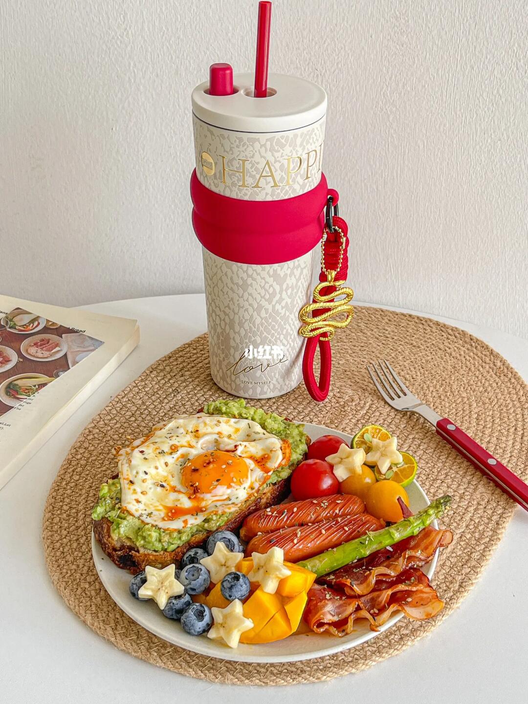 这两天真的好热啊!早餐吃简单舒服一点! 用漂亮杯子装一大杯冰美式 大口喝解腻又爽口🥤 食材:🥑 欧包➕牛油果➕煎鸡蛋➕烤肠➕培根➕芦笋➕圣女果➕金桔➕芒果➕香蕉➕蓝莓 今天的早餐盘荤素搭配简单又丰富 吃完刚刚好👌🏻为夏天准备的漂亮杯子 750ml大口喝水才过瘾~🍃