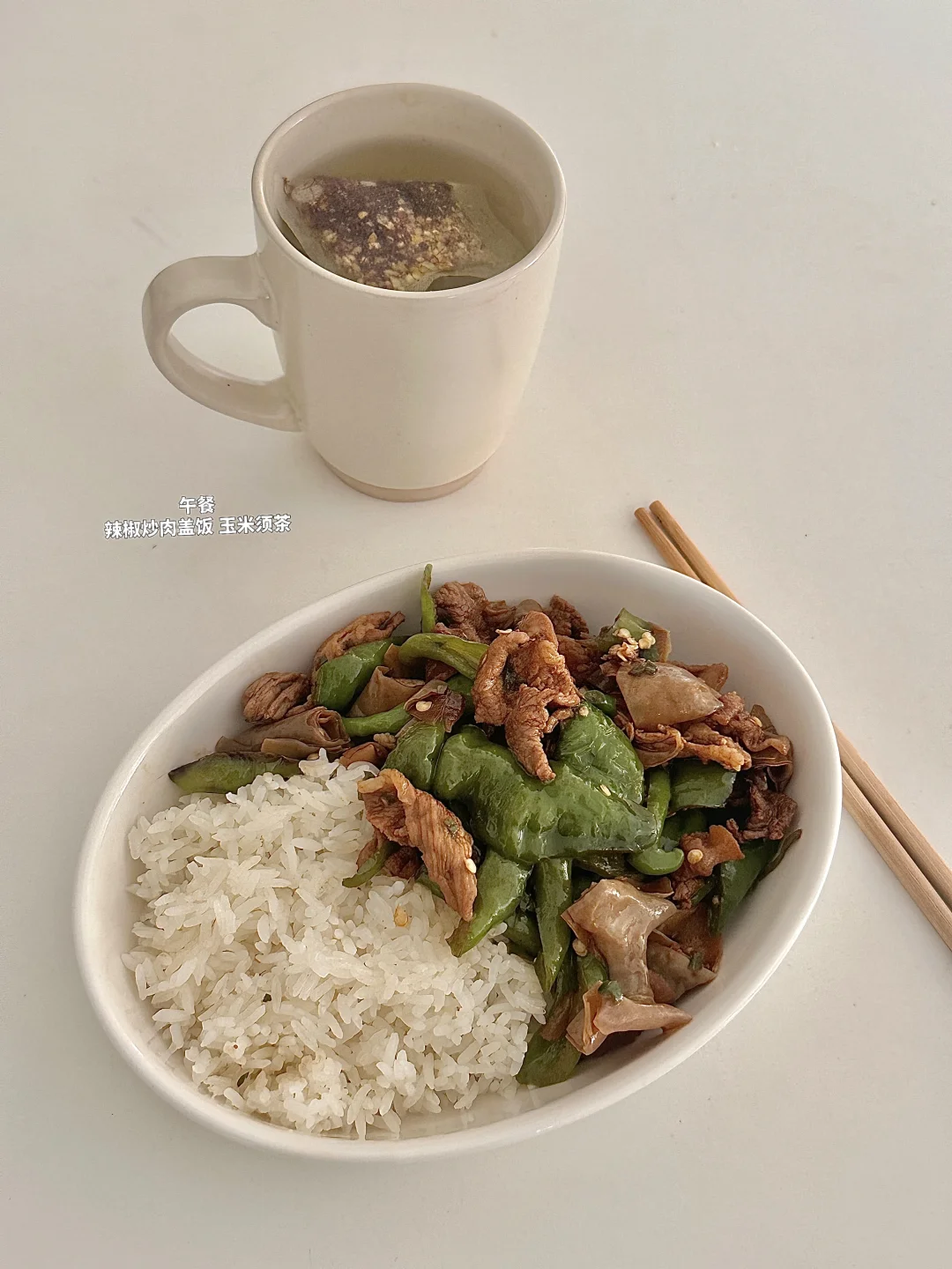 初始体重120斤 目标80斤 - 🥣早餐:鸡蛋➕黑咖啡➕山楂碱水 🥣午餐:辣椒炒肉盖饭➕玉米须茶 🥣晚餐:红薯粥 - ☺︎好好吃饭 健康瘦!