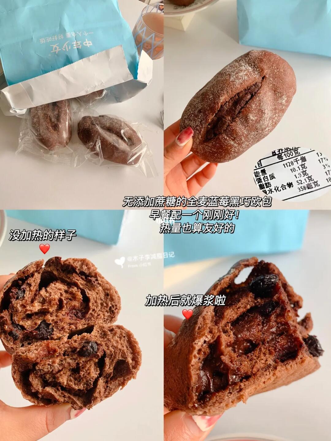 ———不止我一人入面包深似海吧!🍞是我早餐标配~这个蓝莓黑巧欧包,加热吃里面的巧克力还爆浆太满足啦!一个100g刚好一餐量!无糖➕无油➕全麦吃起来扎实又饱腹!
