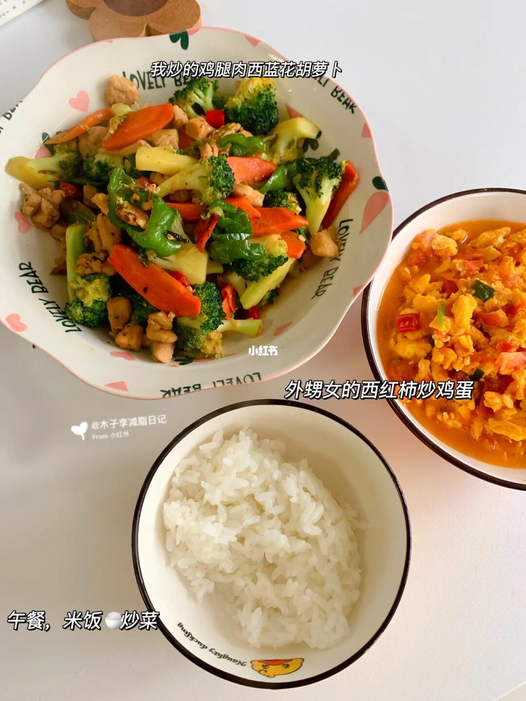 🥣午餐:米饭🍚|西红柿炒鸡蛋|鸡腿肉炒菜