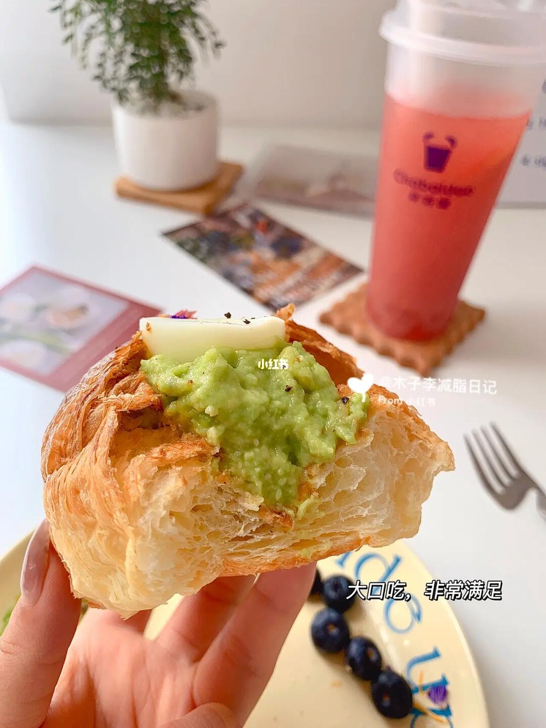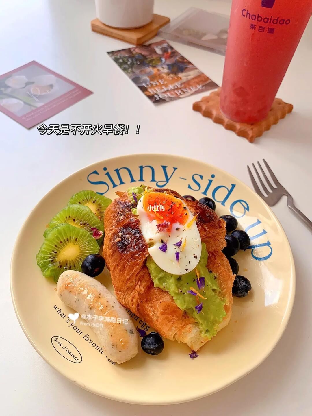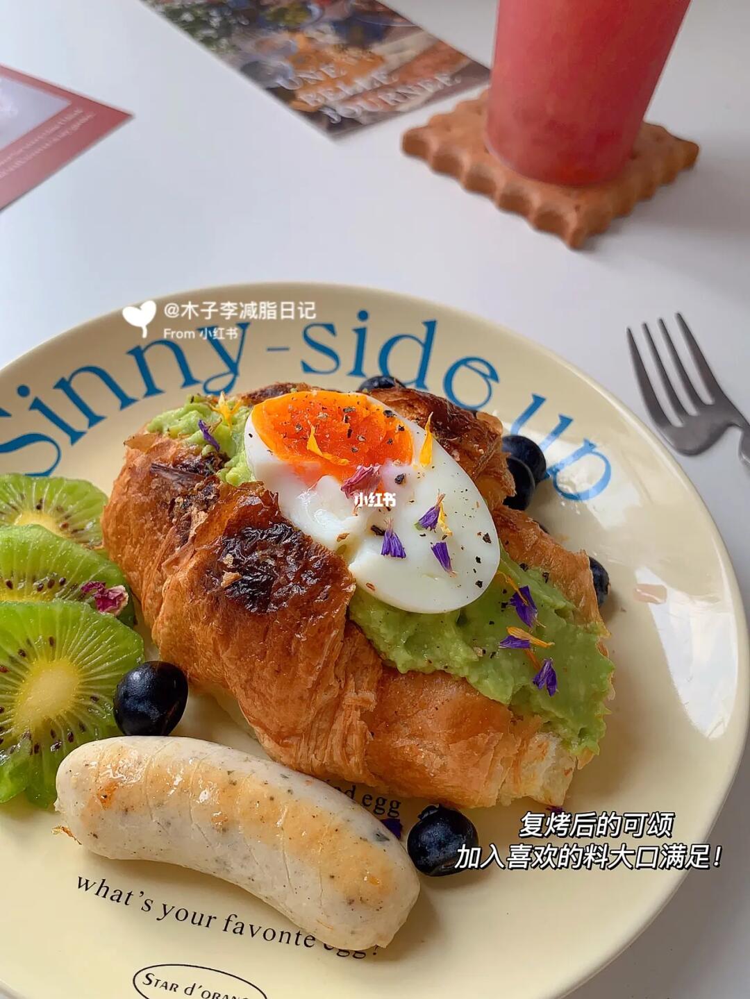 🥯早餐:牛油果鸡蛋可颂|鸡肉肠|红艳艳|猕猴桃|蓝莓