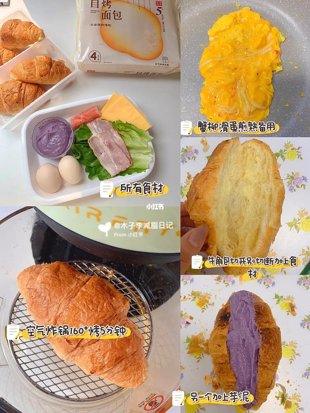 自烤牛角包,直接空气炸锅160°5分钟就可以吃到酥的掉渣的牛角包了,敲方便,吃法多变,而且不含反式脂肪和防腐剂,吃着放心还不担心怕月半了,作为面包脑袋我要囤起来!感受现吃现烤带来的幸福感~