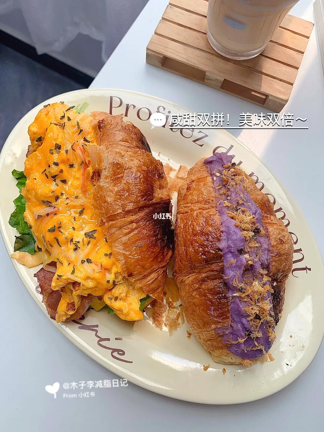 有甜有咸,现烤的面包吃起来真的超满足,再搭配一杯冰拿铁!nice[飞吻R]
