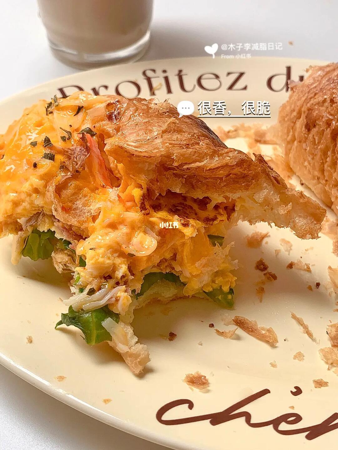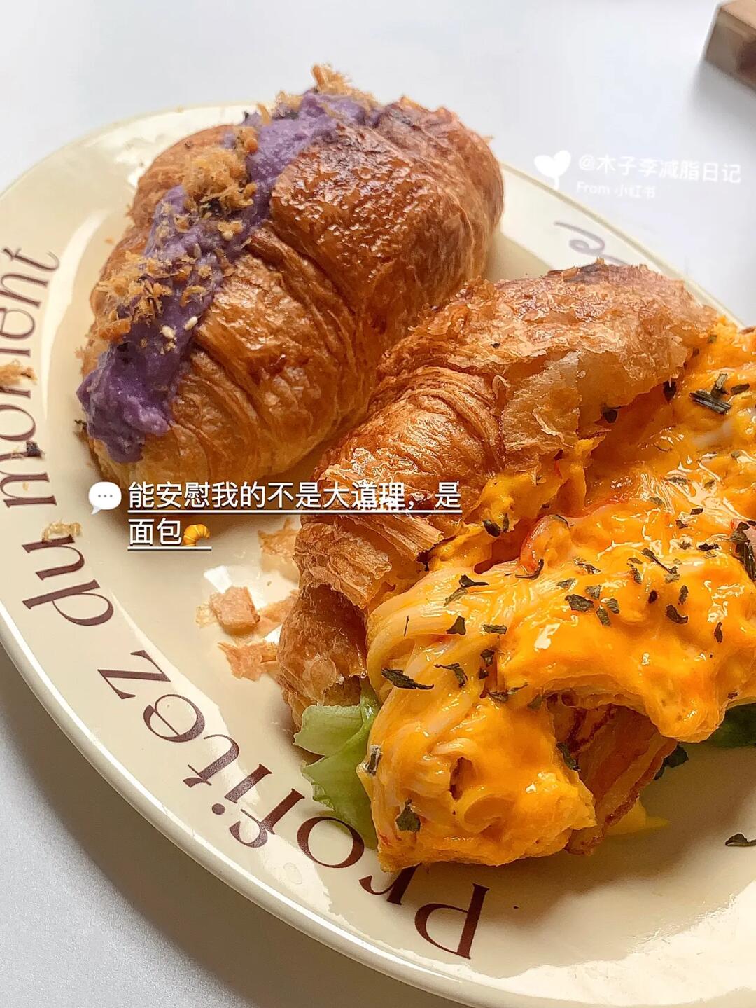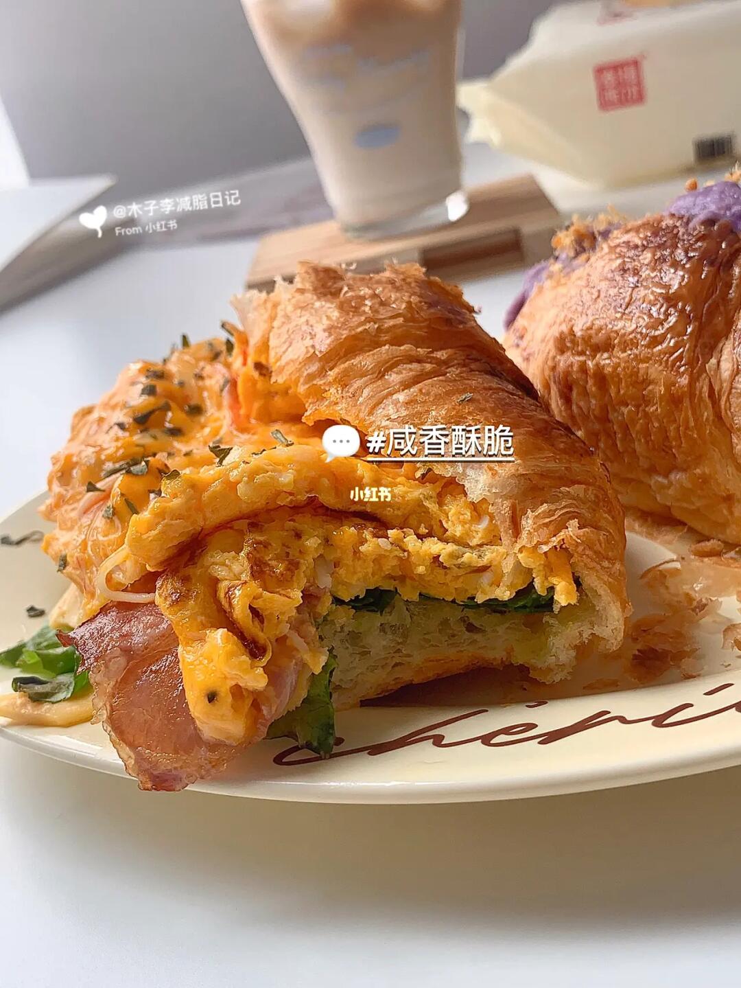 太久没有吃牛角包啦~今天在家自烤牛角包 做个甜咸双拼三明治🥐