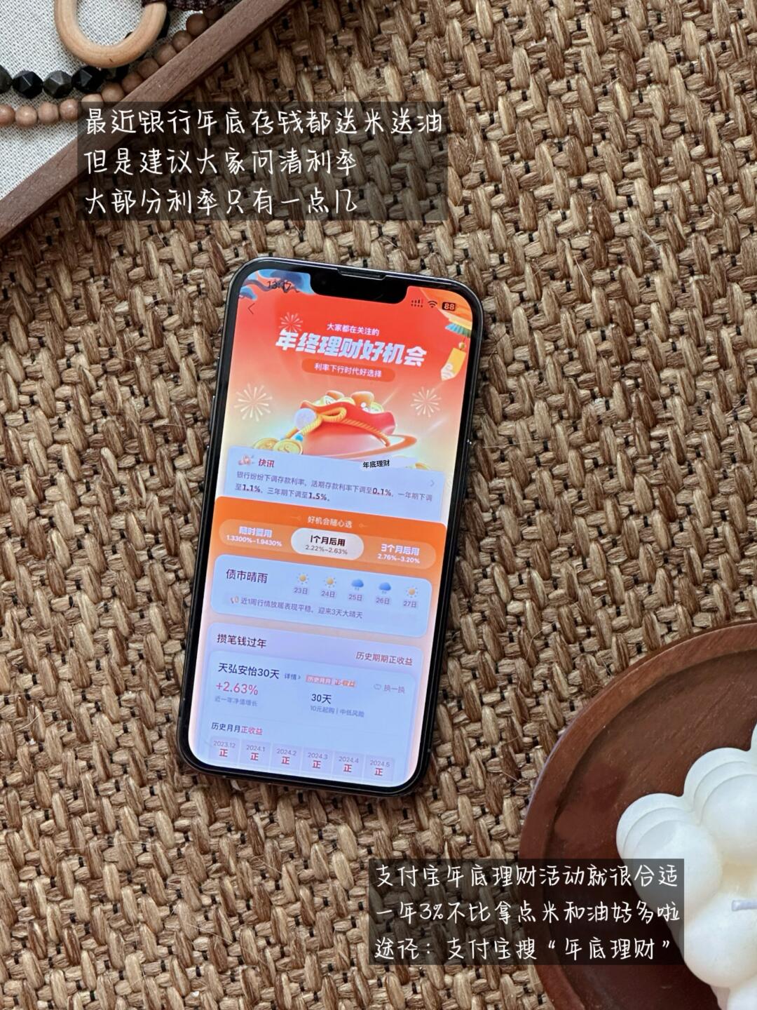 ②怎么选到适合自己的理财:最近银行年底存钱都有活动还送米送油,但建议大家先问清利率,我做了一下攻略发现大部分利率只有一点几。支付宝推出年底理财活动,整体比定期存款香一些,一年3%。现在去支付宝搜“年底理财”,就能参与活动,还有大额会场🧧可以领副业 职场 蚂蚁财富 正收益 余额宝 年底存钱 存钱 年终奖 红包 大学生 蚂蚁保子