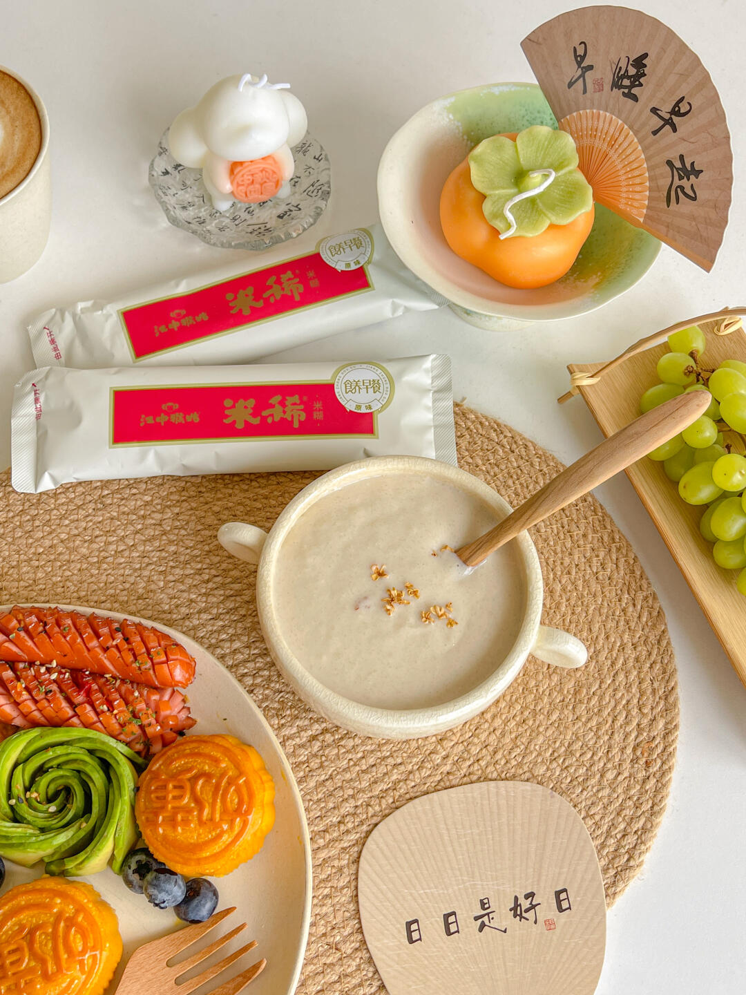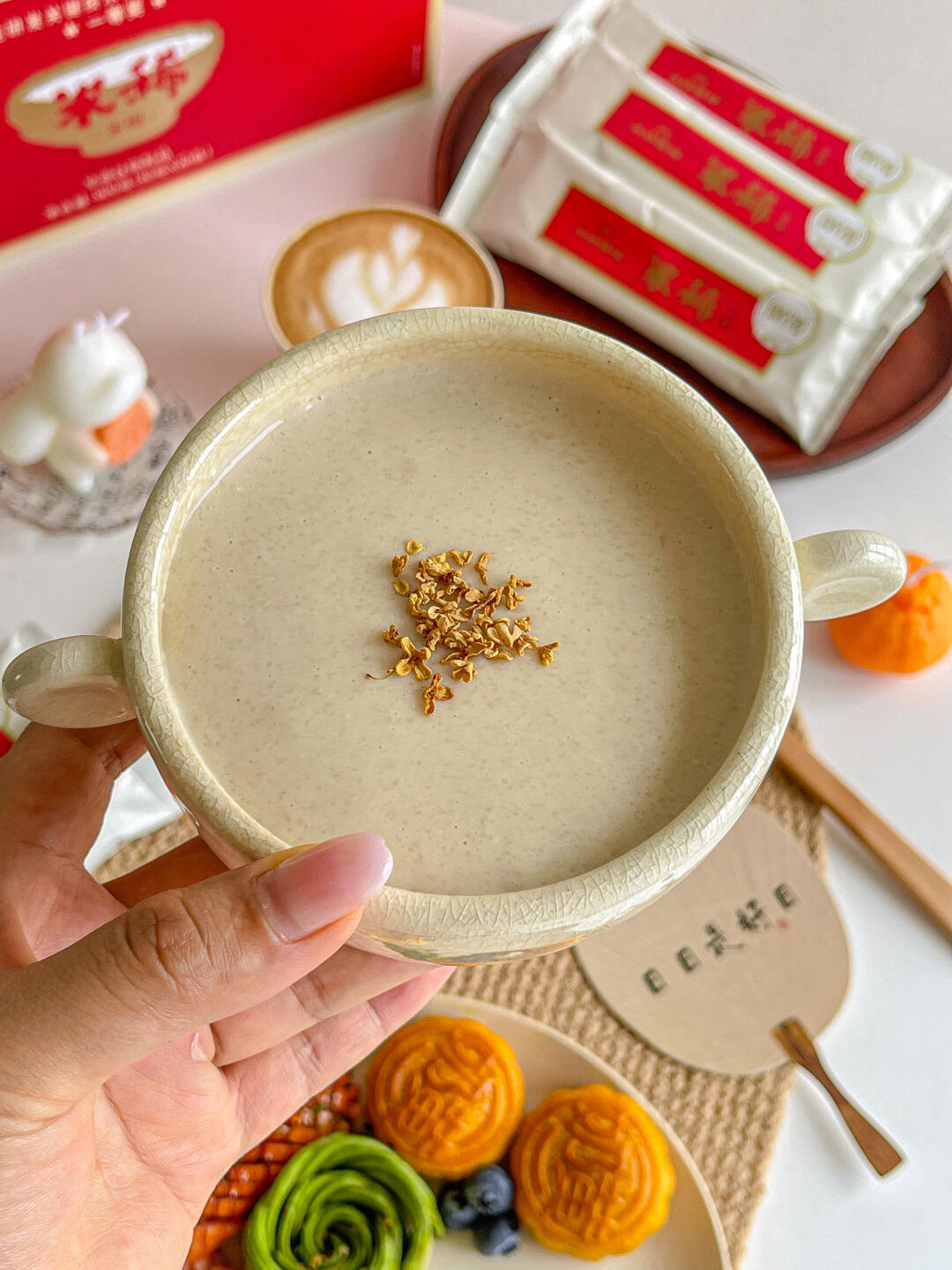 甜糯绵密的月饼搭配口感顺滑的米稀 甜香不腻~