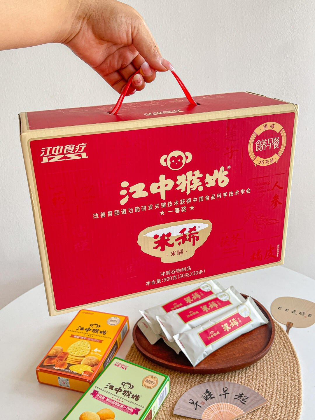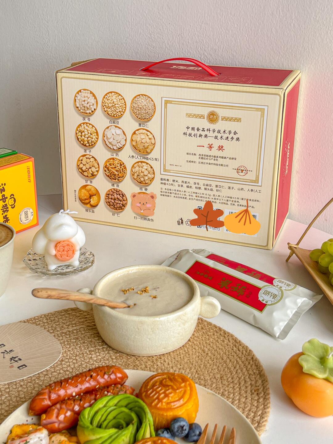 最后被这个江中猴姑米稀戳中 既适合囤货自家早餐养胃 也合适中秋送长辈~还都是红红火火的礼盒装 体面又贴心 果断囤了两盒~