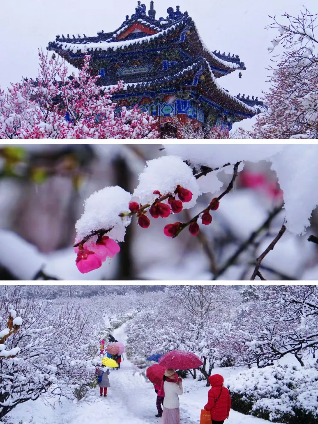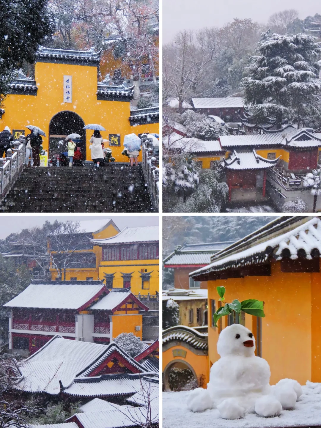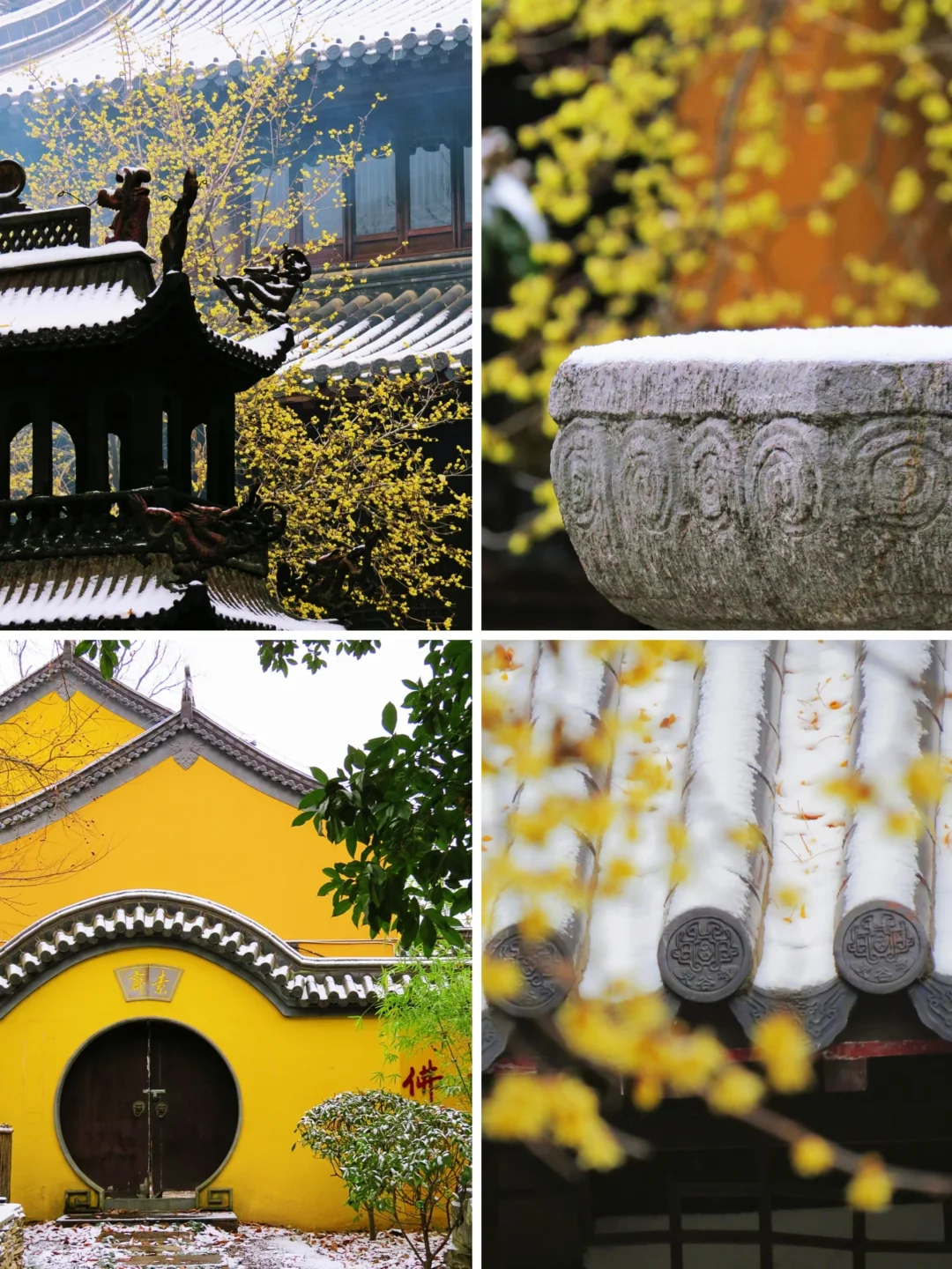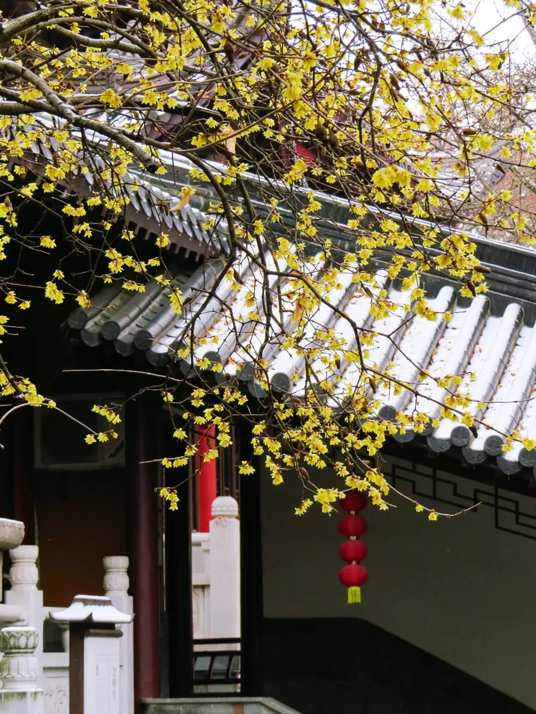 灵谷寺的雪景也很美,雪中蜡梅更有一种独特的韵味,蜡梅花期1月份