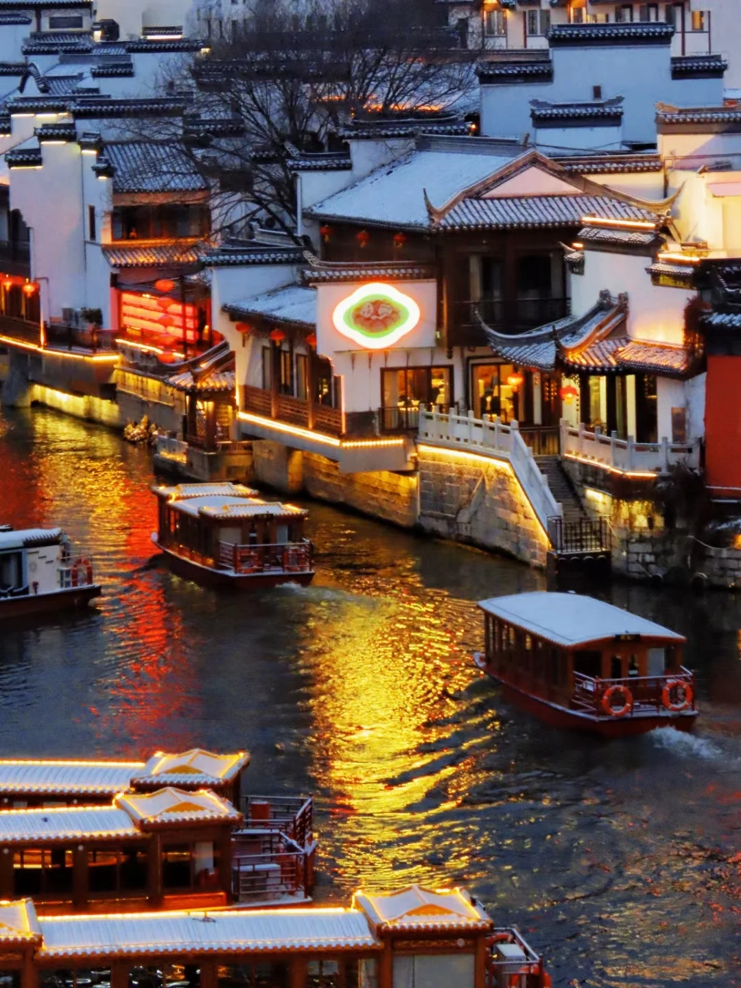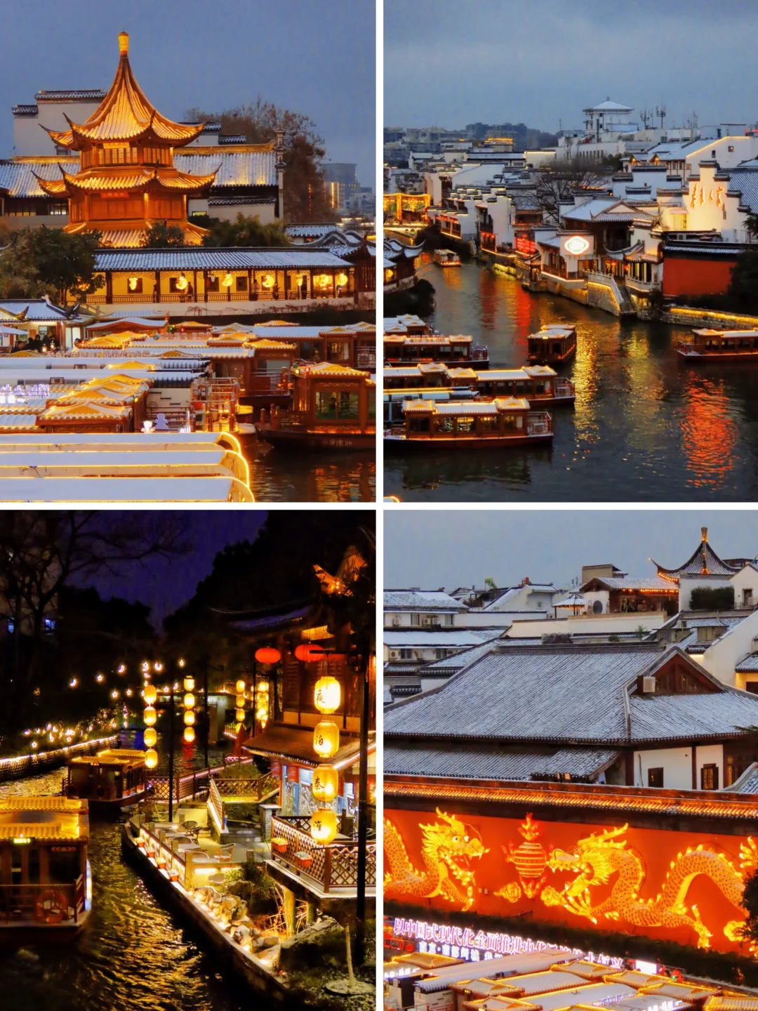 雪中的夫子庙秦淮河夜景,氛围感绝了