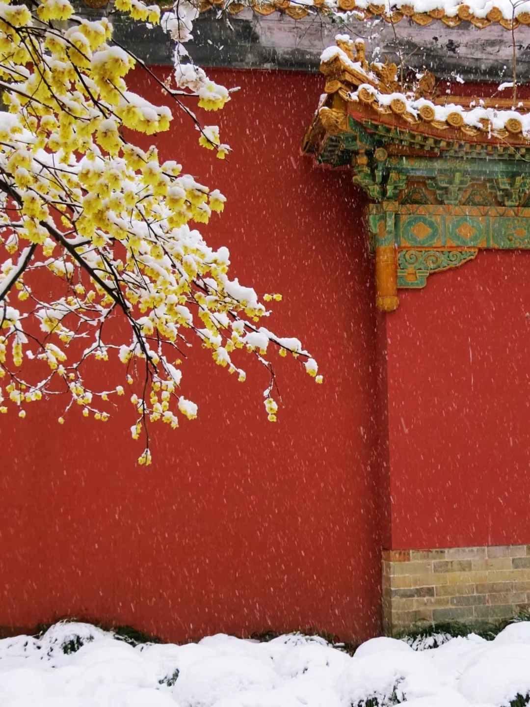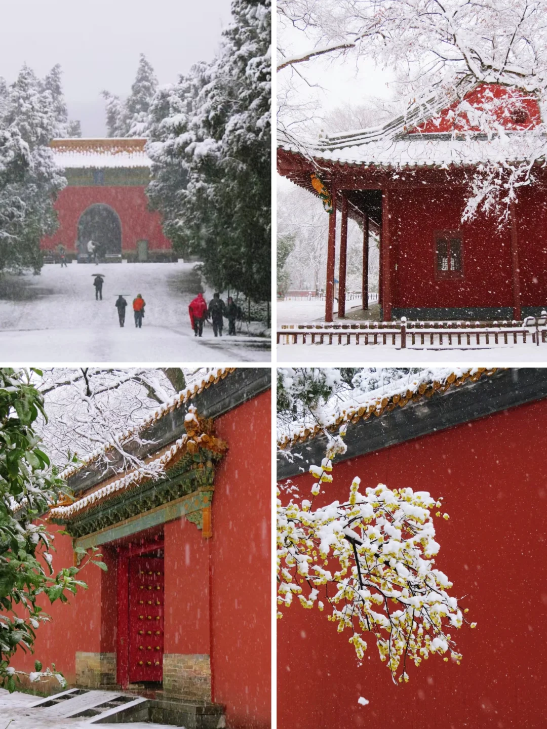 明孝陵的红墙、蜡梅、白雪,真的让人瞬间穿越回了金陵,蜡梅花期是1月份