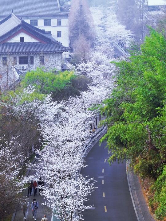🔸鸡鸣寺里面是没有樱花的,樱花具体位置在寺庙门口的鸡鸣寺路,赏樱花不用买门票进鸡鸣寺