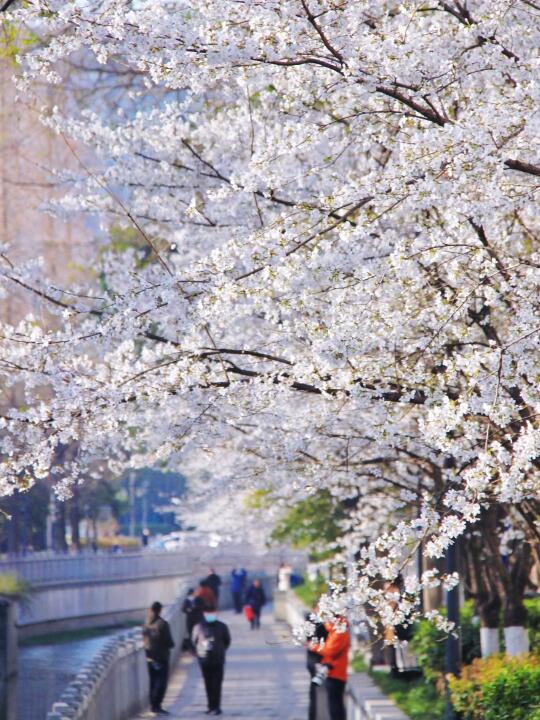 🔸珍珠河樱花最美的地方不在北京东路这边,地铁出口不是鸡鸣寺站,是浮桥•华海3C广场站1号出口,左转就是珍珠河