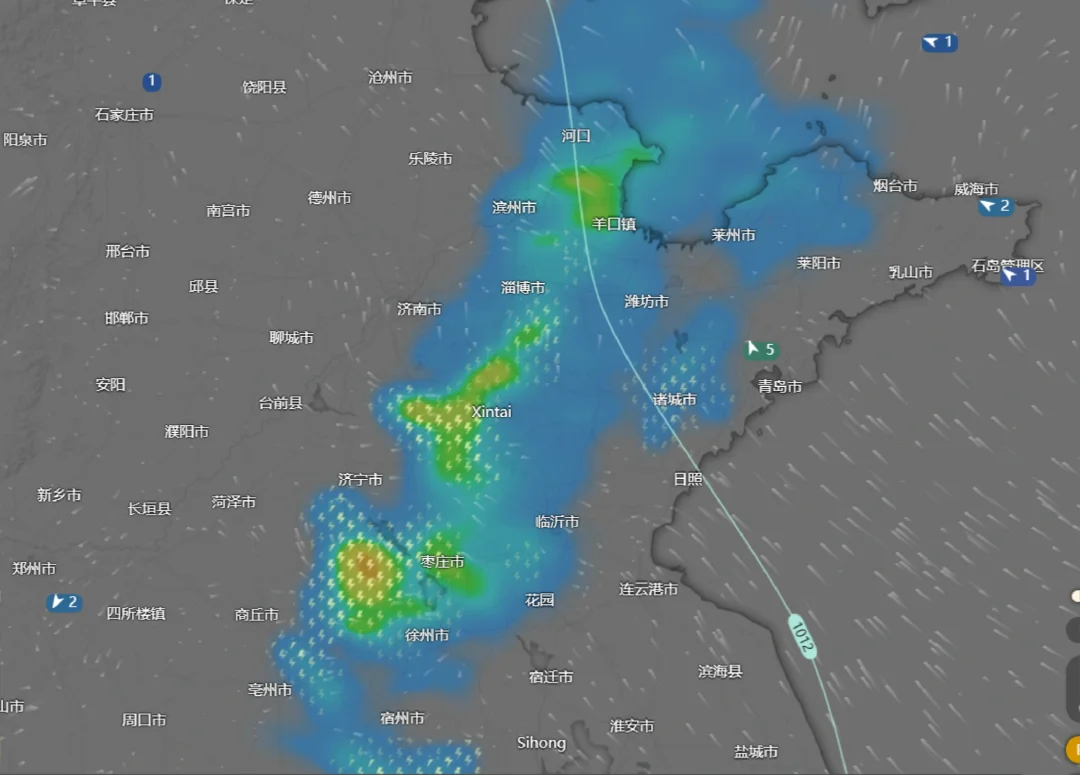 受高空槽东移影响,今天傍晚山东西部地区出现了雷阵雨天气,德州、济南、泰安、济宁、菏泽、聊城等地已经出现较明显的雨水,聊城茌平最大降水量为8.0毫米。预计今天夜间降水云团将会继续向东发展,大部地区将有一轮降雨天气过程。 山东省气象台官方天气预报:8日夜间到9日白天,菏泽东部、济宁、枣庄和泰安天气阴有小到中雨局部大雨并伴有雷电转多云,局部有小冰雹;其他地区天气阴有雷雨或阵雨转多云。南风转北风3~4级,雷雨地区雷雨时阵风7~9级。