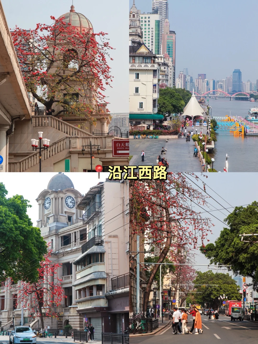 🌟岛的尽头穿过马路是📍“沿江西路”,沿着珠江岸边走依次经过“粤海关博物馆”、“新华大酒店”和“新爱群大厦”