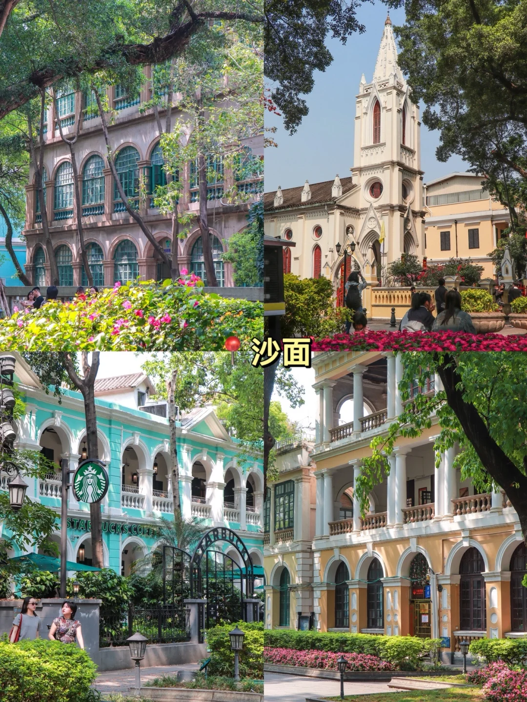 🌟过天桥就是📍“沙面岛”,这里是近代史和租界历的缩影,树影斑驳、五颜六色的欧式建筑特别出片