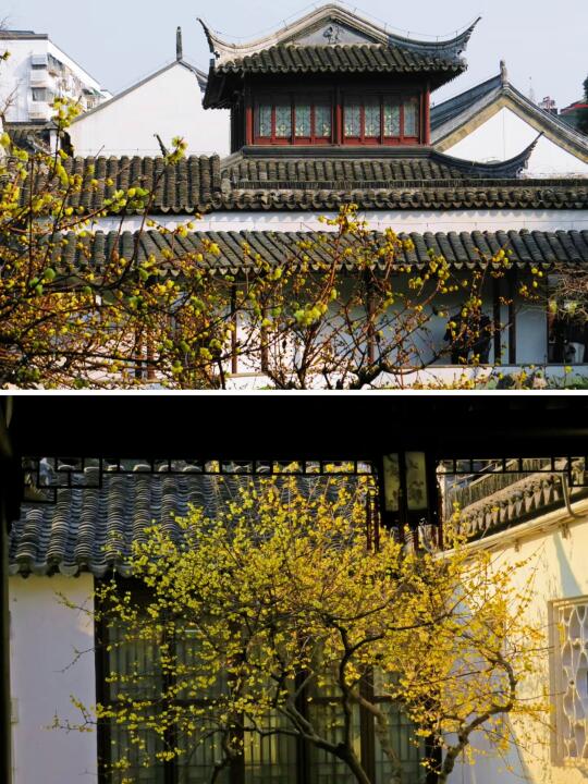 连续拍了几年瞻园蜡梅,集齐了晴天、雨天和阴天的蜡梅图片