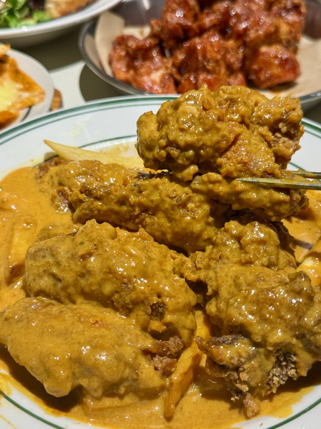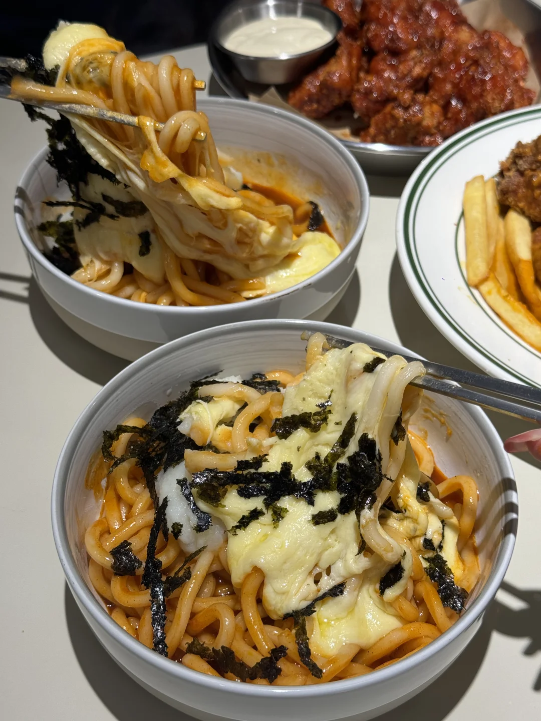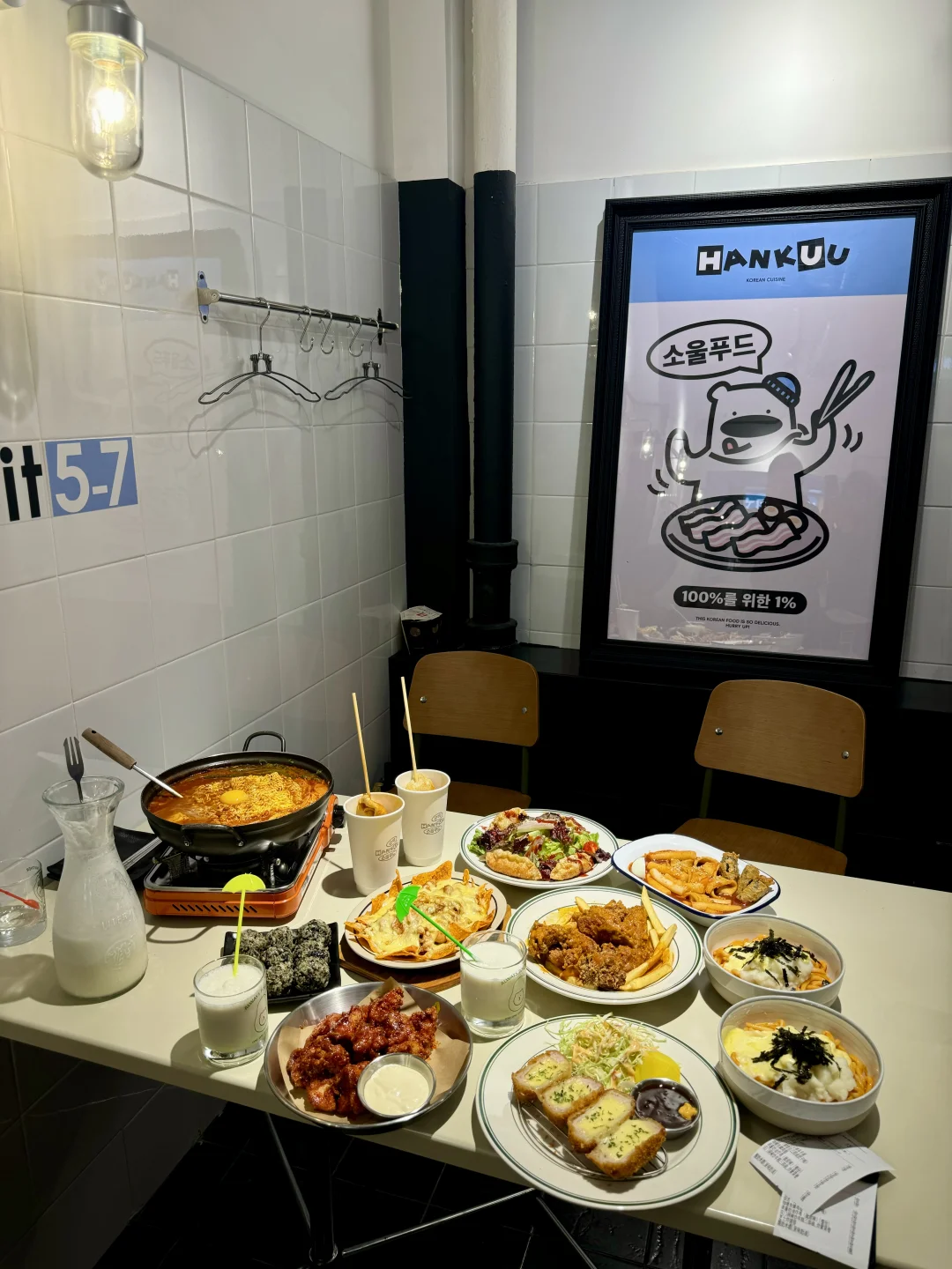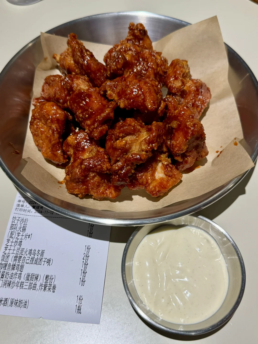 看起来很好看、吃起来更好吃的一家韩料 鱼鳞鸡翅和果酱奶油炸鸡真的好吃s了!! 芝士土豆泥火鸡乌冬面吃起来又辣又过瘾 部队火锅和酸奶米酒也hin不错哦