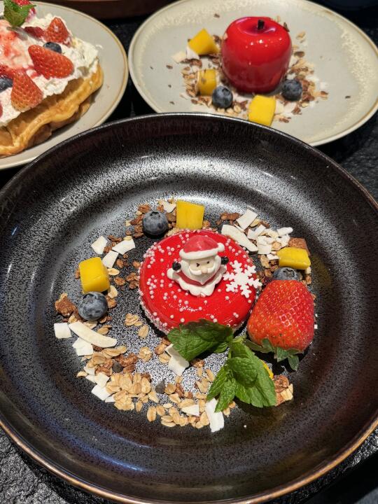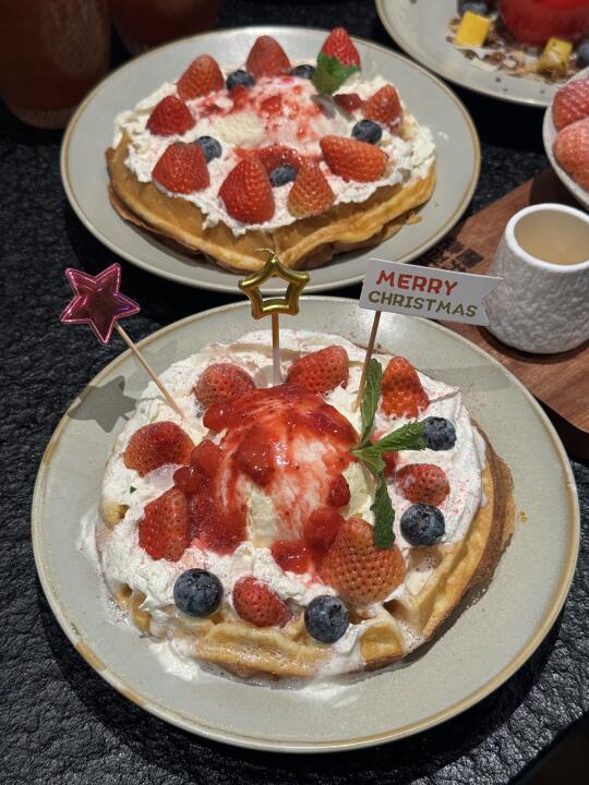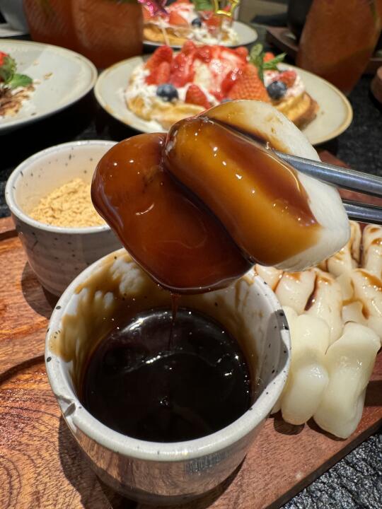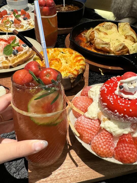 水游城这边的韩料店,错峰来吃都超多人!! 圣诞限定新品都好好看啊,貌美又好吃😋 辣牛肠部队锅料特别丰富,牛肠很有弹性!一口爆油但完全不腻!! 芝士瀑布奶酪鸡蛋糕duangduang的特别嫩!!真的hin好吃