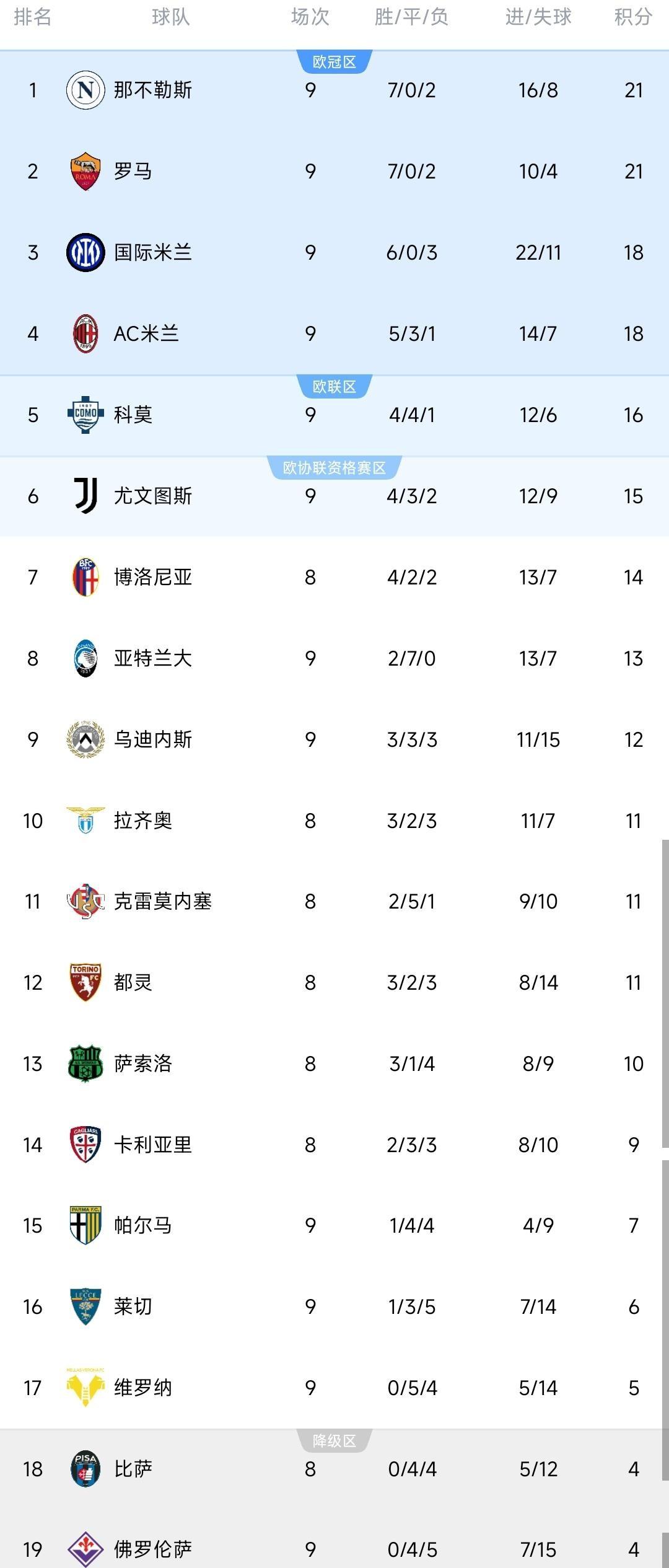 意甲积分榜风云突变!罗马反超国米跃居第二,尤文绝地反弹终结8场不胜