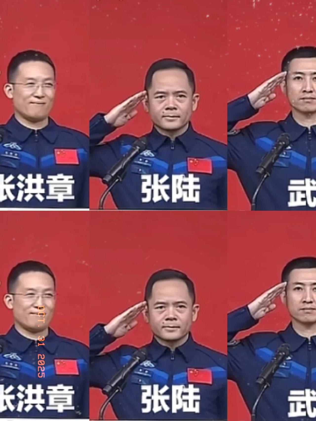 你们有没有发现一个细节, 航天员在记者见面会的时候, 张陆和武飞都是敬礼,而张洪