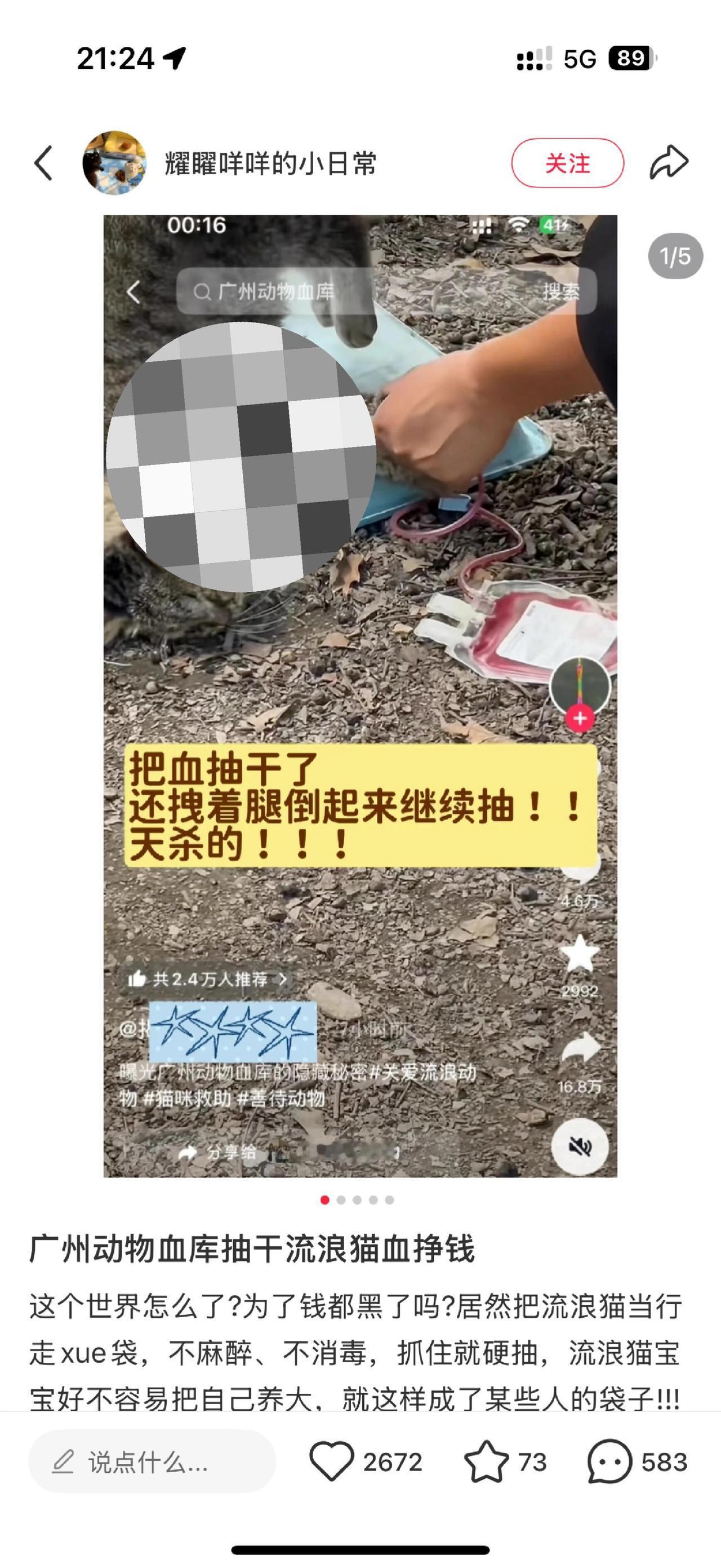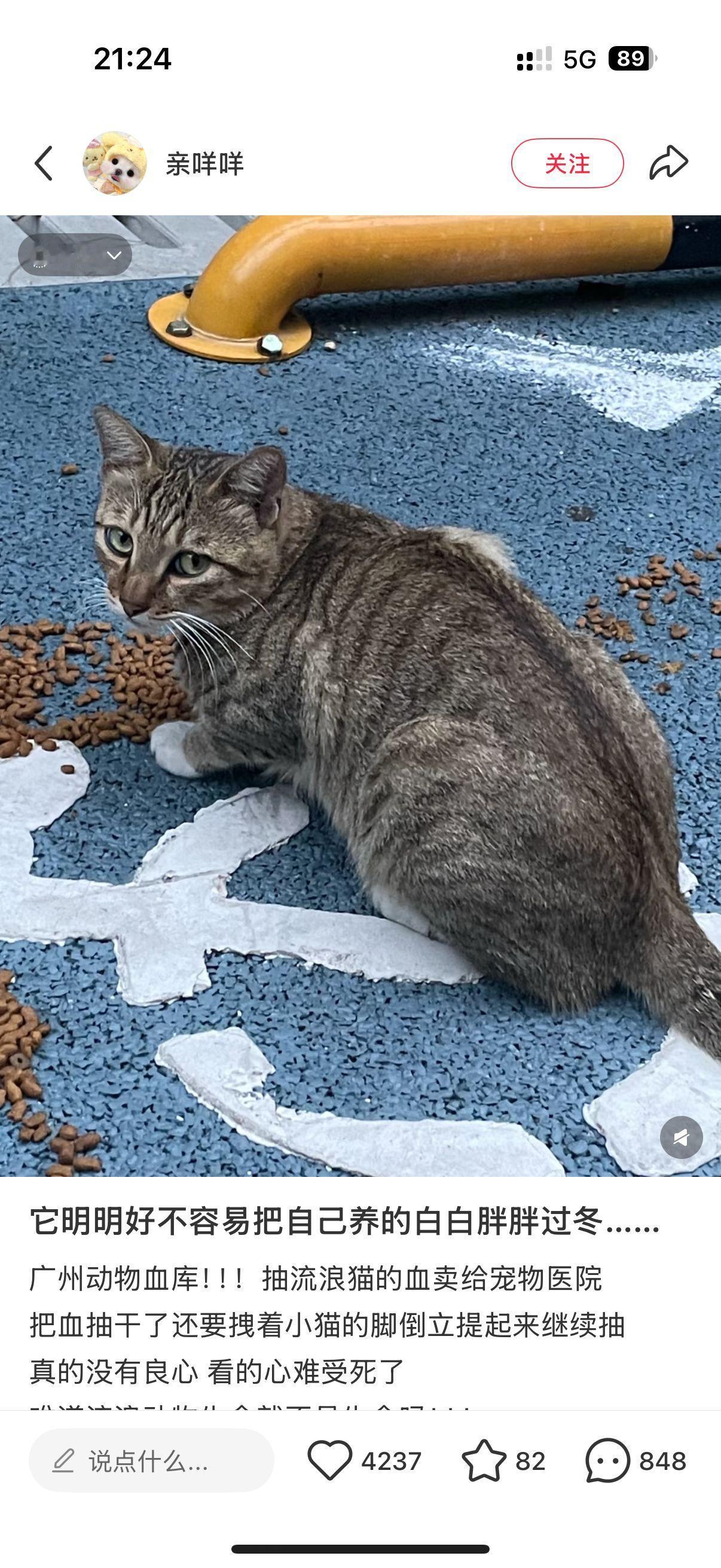 看到广州动物血库这事,我气得手都在抖。他们把流浪猫当什么了?移动的血袋吗?不麻醉不消毒,抓住硬抽,这跟虐待有什么区别? 那些流浪猫好不容易在街头活下来,却要遭这种罪。前阵子有小橘子,现在又是广州血库,这些人的良心不会痛吗?为了钱真的什么都干得出来。 咱们养宠人必须清醒点,别让爱心被利用。所有来源不明的“宠物血库”都要坚决抵制——没有买卖就没有伤害。 万一自家猫需要输血,记住这几点:找靠谱的养宠朋友或正规机构;检查献血猫的前腿和后脖颈,有剃毛痕迹的绝对不能用;健康猫咪一年最多献两次血,一次不能超过50ml,超量就是在害它! 流浪猫也是活生生的生命啊。大家一起发声谴责这种没人性的行为,见到非法血库立即举报。真希望赶紧出台相关法律,管管这些无法无天的人,别再让无辜的小生命受苦了。 广州流浪猫 抵制虐猫 宠物输血 尊重生命善待动物 流浪猫的命也是命