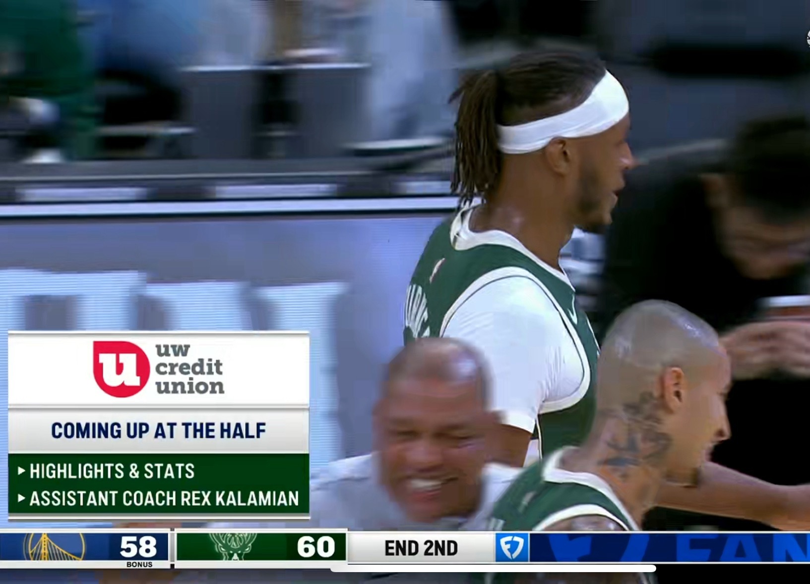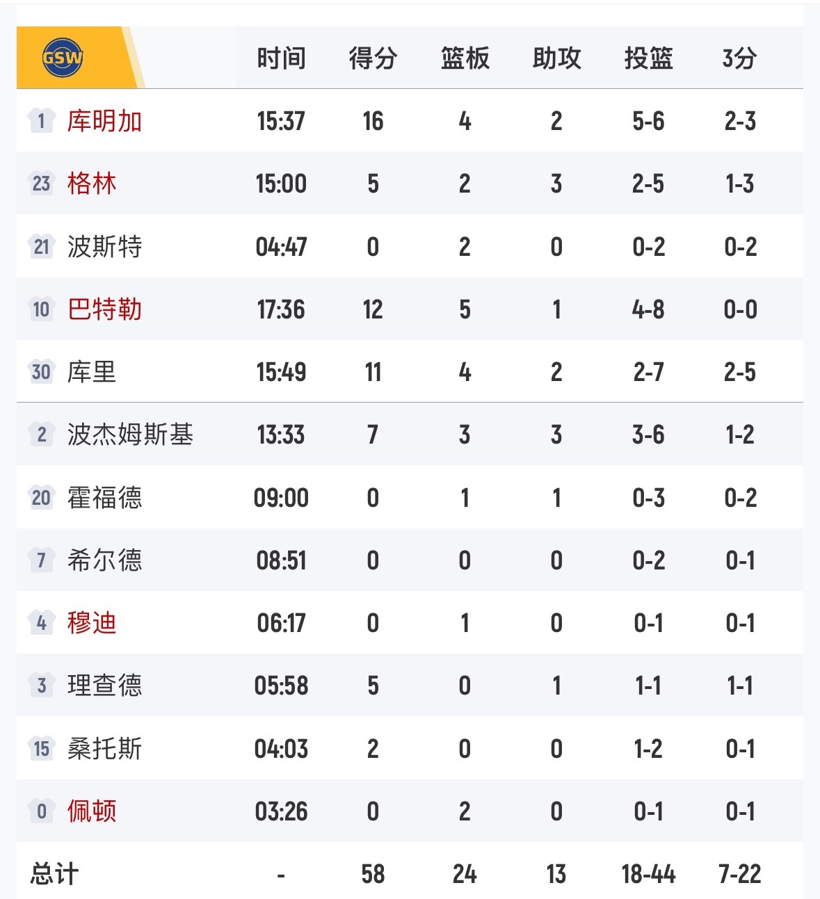 勇士将分差追到2分,库明加厉害半场16分。勇士vs雄鹿