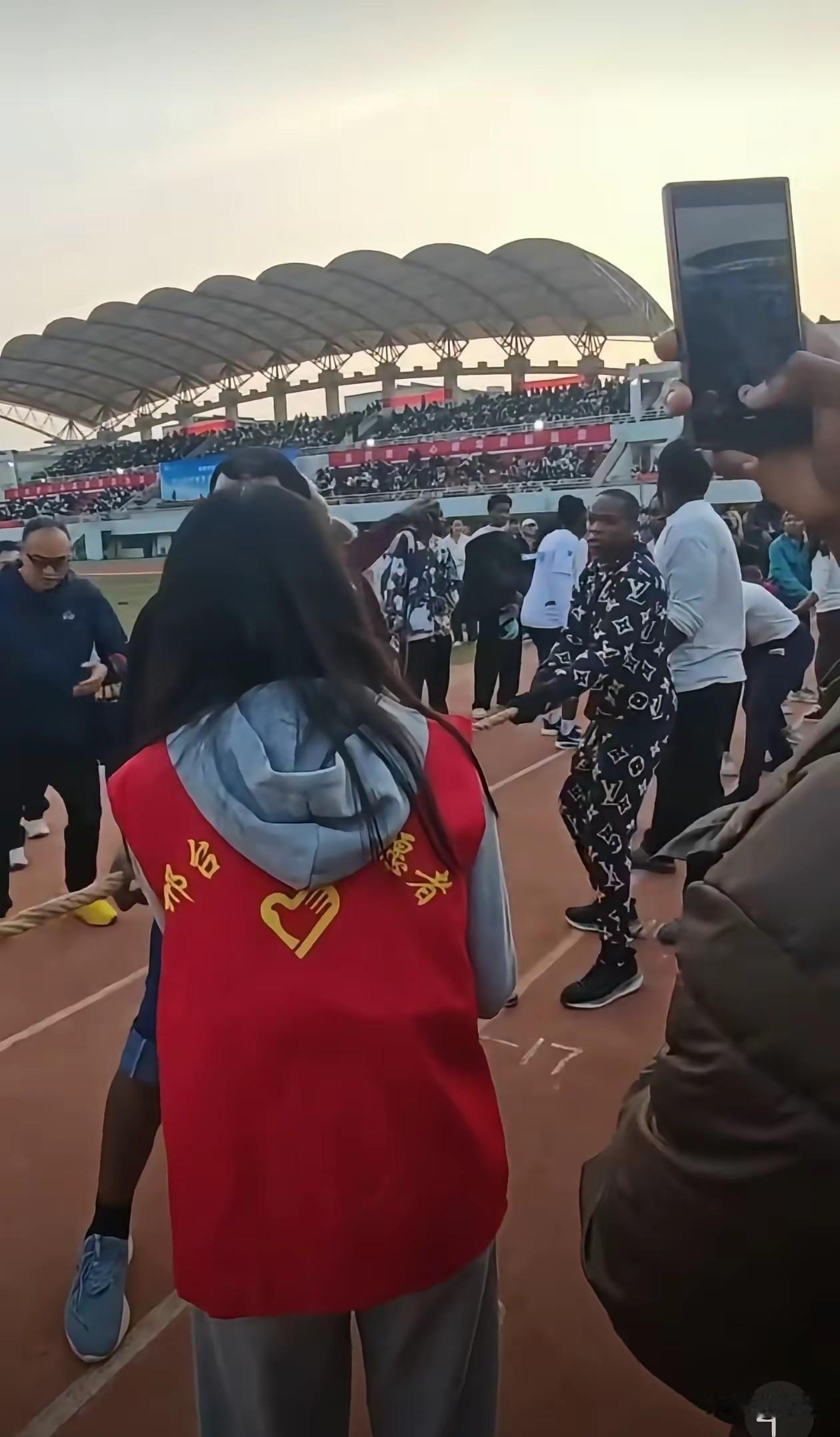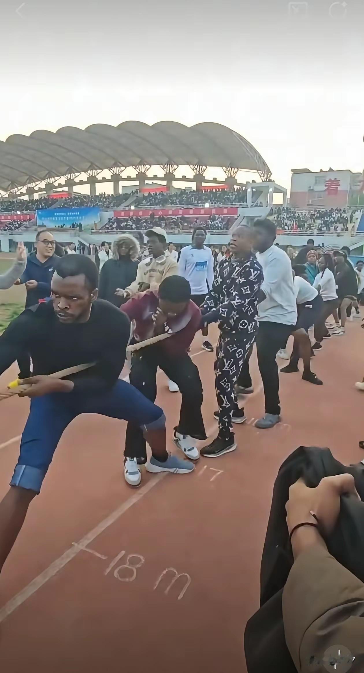 邢台某大学的老外拔河火了, 不是对面的中国学生不努力, 是真的拔不过呀, 虽然我国学生已经加强了锻炼, 但是一周一节体育课实在效果不佳, 被学业压力压的喘不过气, 哪有时间去打球, 不像老外吃的好玩的好, 不用努力照样可以来中国去重点大学留学,两方根本就不在一个等级, 你让小学生和大人拔河, 答案可想而知, 肯定是输定了, 况且现场还有为人家加油的女生, 老外能不好好表现一把! 大家对于老外赢得拔河比赛怎么看? 留学生 拔河 邢台运动场地 邢台学院运动会